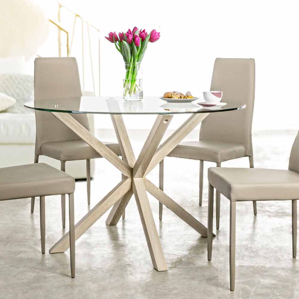 Kulatý jídelní stůl se skleněnou deskou v Adamovi, moderním designem