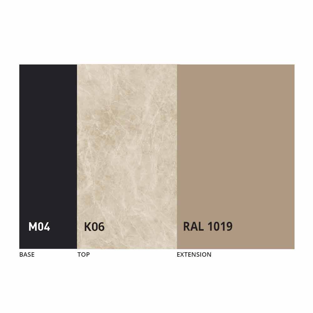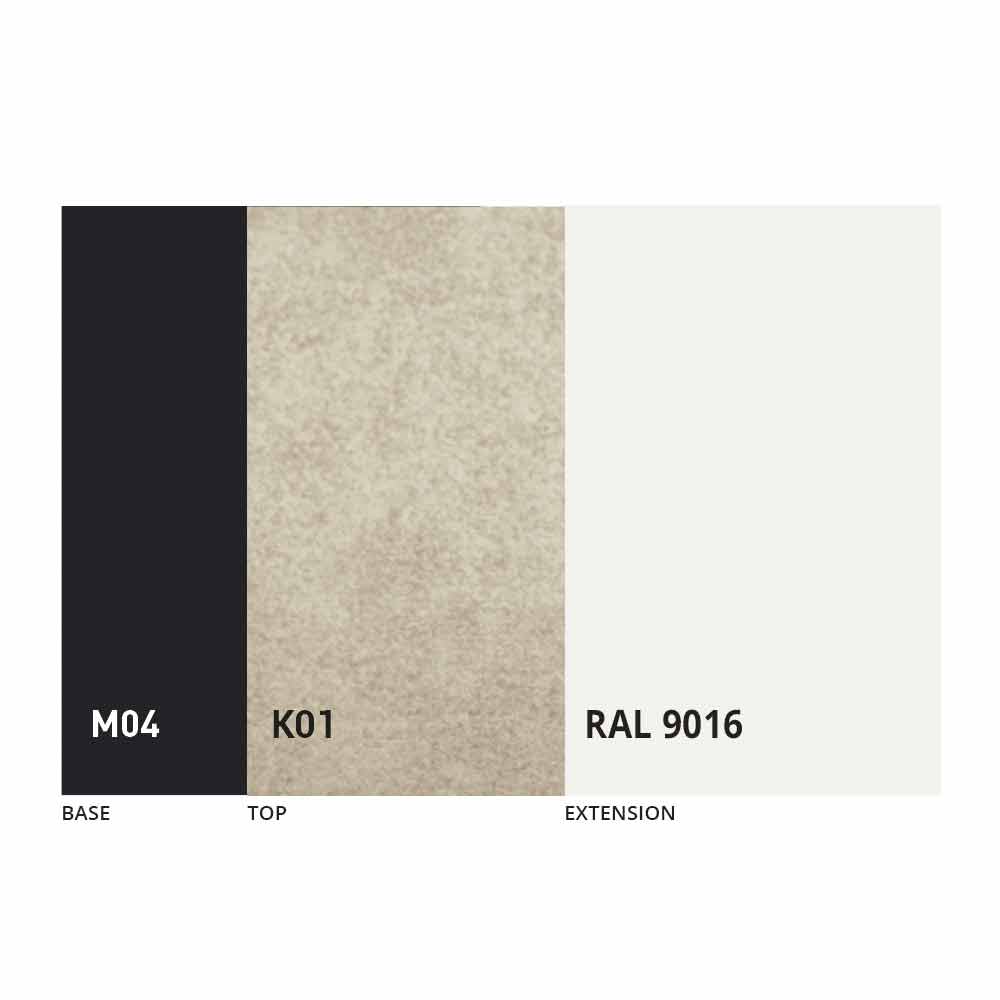 Desku a základnu stolu lze upravit pomocí různých materiálů a vzorových povrchových úprav nebo lakování RAL. Pro informace nás kontaktujte pomocí příslušného formuláře „