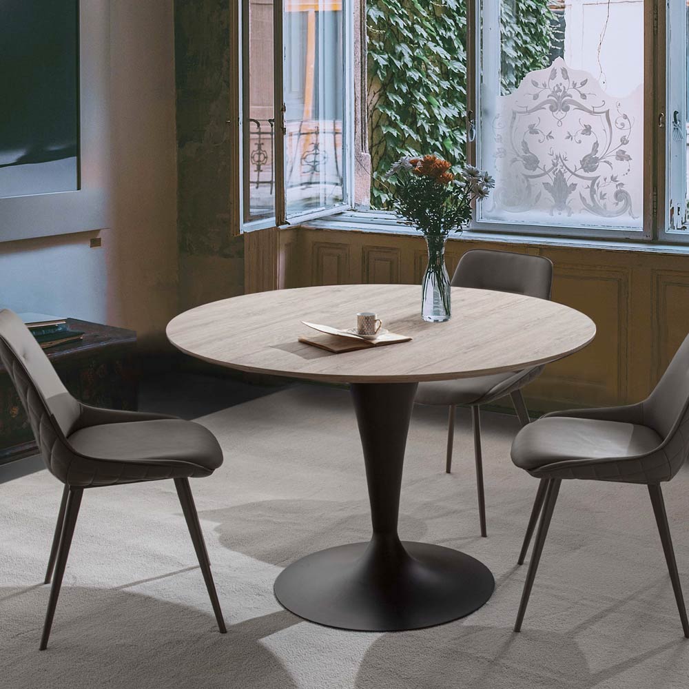 Úžasný jídelní stůl s kulatou deskou z pokoveného laminovaného dřeva (v 30 mm), povrchová úprava dub s texturou s rozšířeným okrajem z MDF a základna z černě lakované oceli . Elegance a funkčnost jsou klíčová slova, která nejlépe vystihují tento moderní kus nábytku, který ztělesňuje extrémně moderní vzhled schopný obohatit estetiku místnosti při zachování poměrně malých rozměrů, a proto se ukazuje jako ideální pro ty, kteří mají k dispozici omezený prostor, ale nechtějí dát vybavit je sofistikovaným a elegantním způsobem. Ideální pro dokonalé prostředí v jakémkoli prostředí, tato tabulka je také mimořádně univerzální díky perfektní kombinaci jednoduchých a základních povrchových úprav.