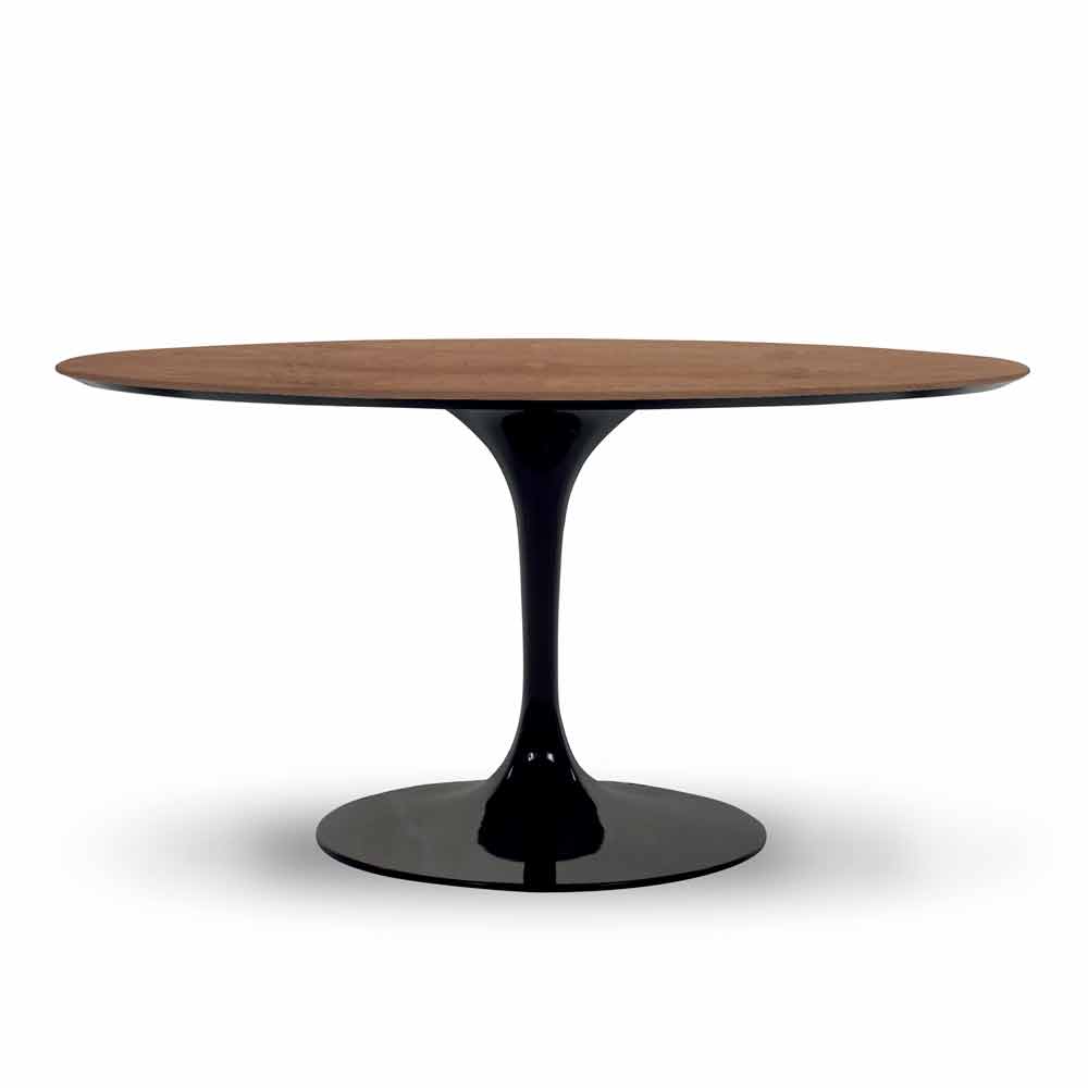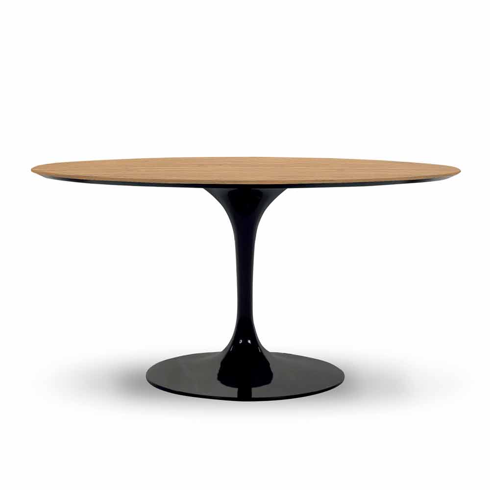 Luxusní jídelní stůl s kulatou deskou vyrobený v Itálii ze dřeva a hliníku.