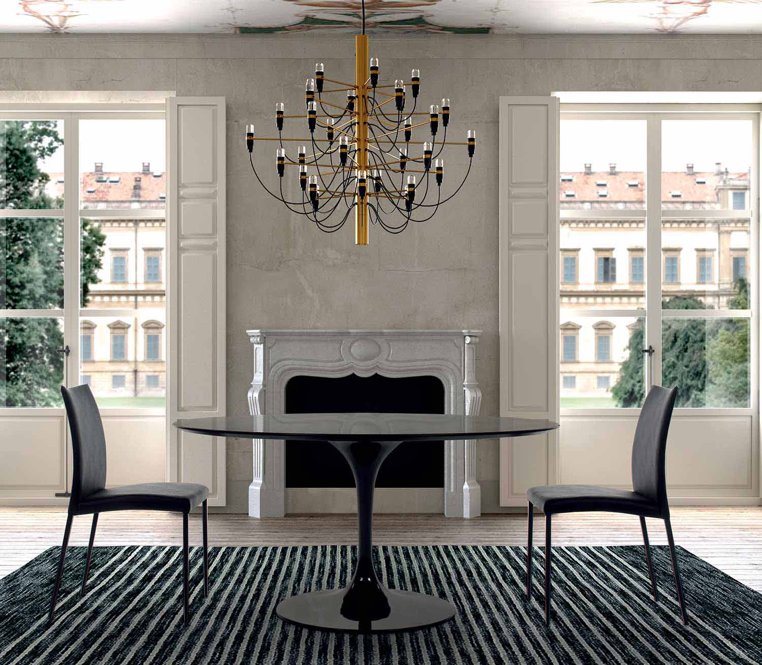 Moderní kulatý stůl Dollars vyjadřuje silnou osobnost a je ideální pro zařízení s různými stylistickými odkazy.