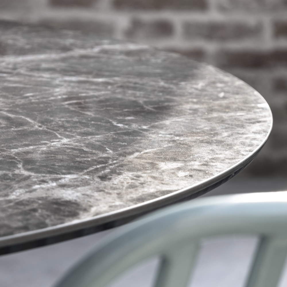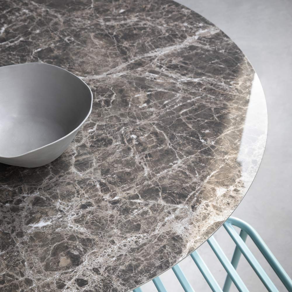 Kulatý jídelní stůl ze sklokeramiky a kovu Made in Italy.
