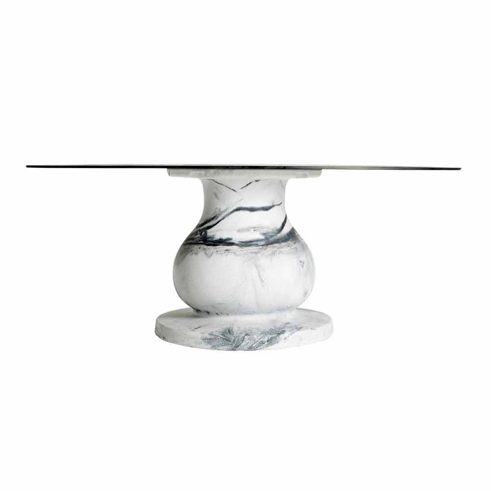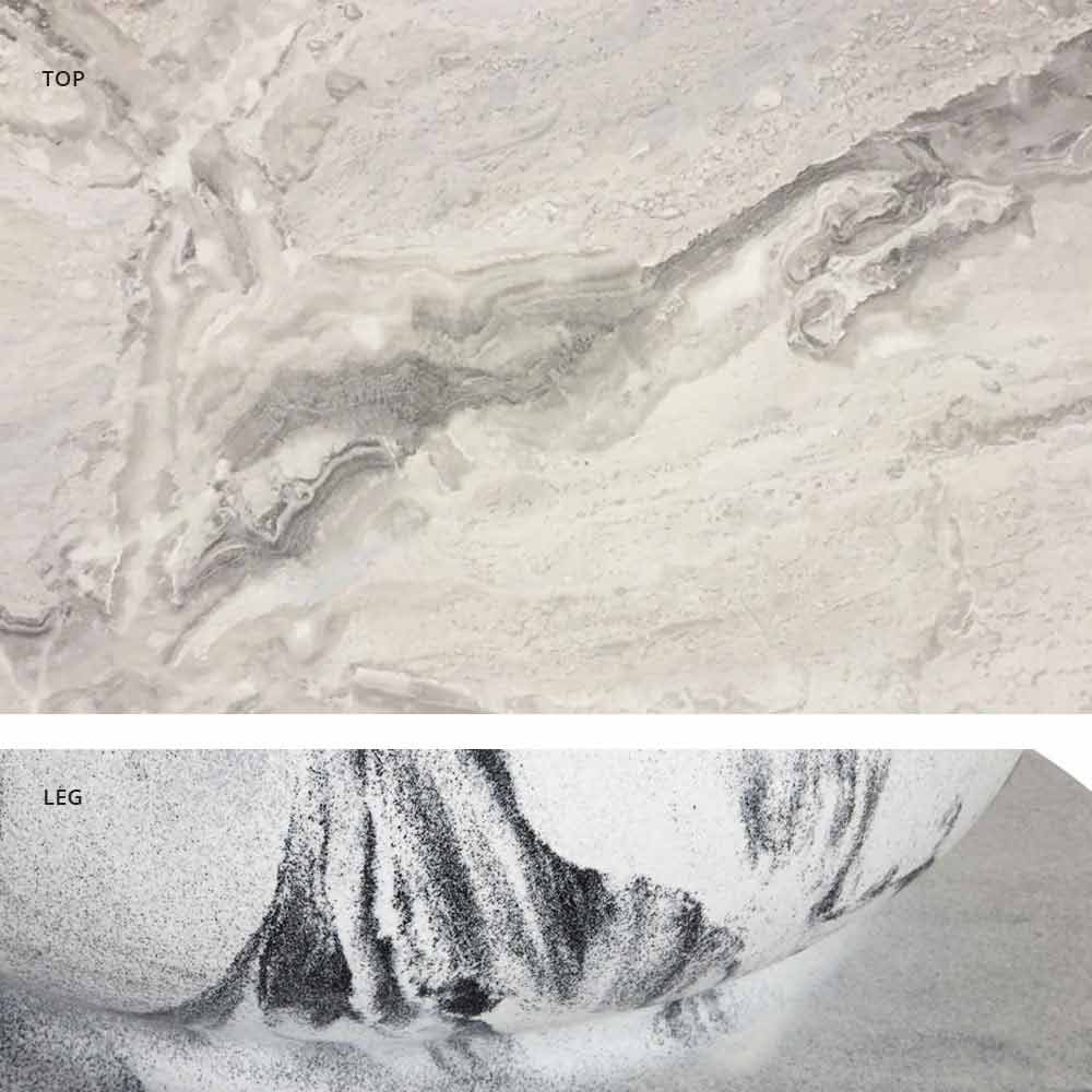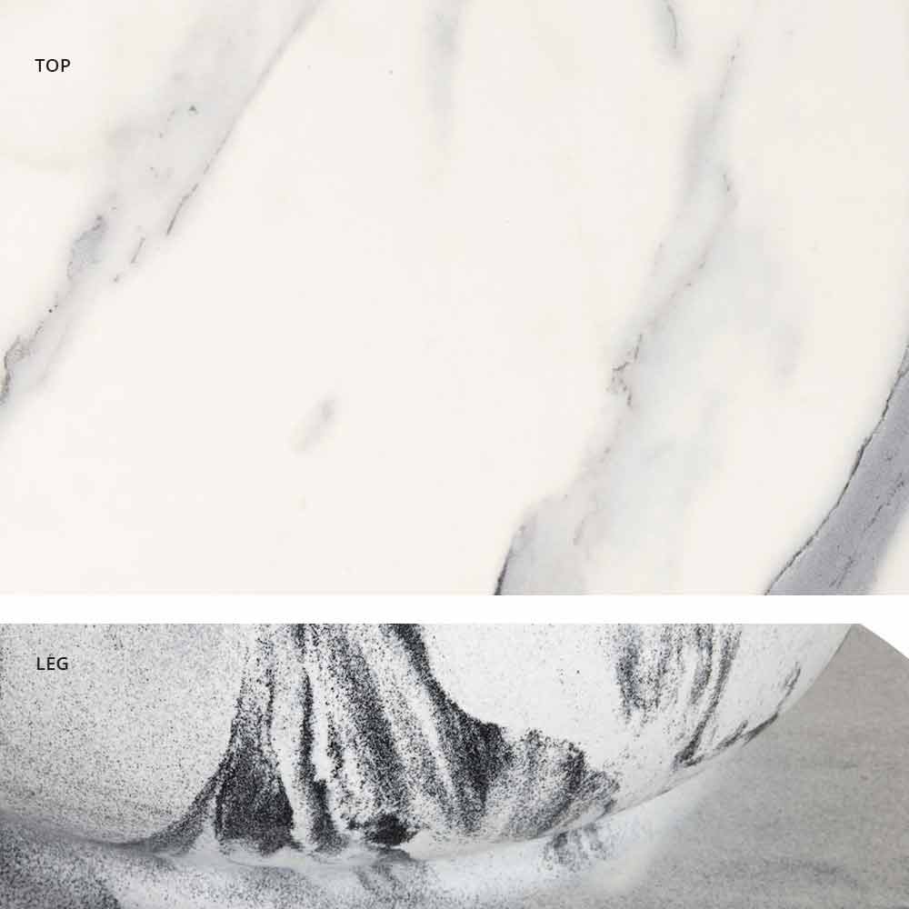 klasika do jídelny , zrozená díky spolupráci s interní výrobou a neustálým výzkumem zpracování materiálu. Tak se rodí různé kompozice, které jsou inspirovány nejžádanějšími mramorovými úpravami. Na půli cesty mezi řemeslem a průmyslem umožňují hluboké znalosti výrobního oddělení o zpracování plastových materiálů vytvořit v každém kusu jedinečnou povrchovou úpravu se všemi nedokonalostmi, díky nimž je práce řemeslníka nádherná.