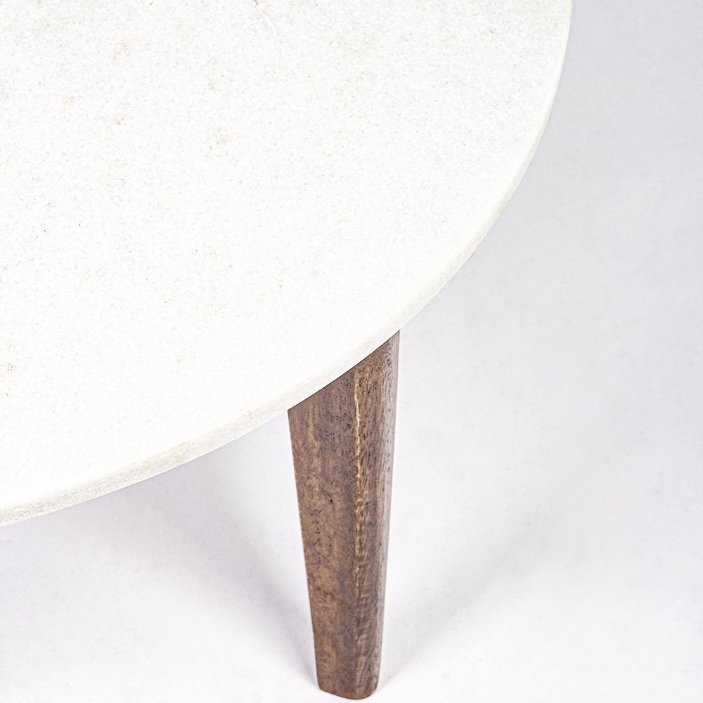 Kulatý konferenční stolek do obývacího pokoje z mramoru a mangovníkového dřeva - Desiderio
