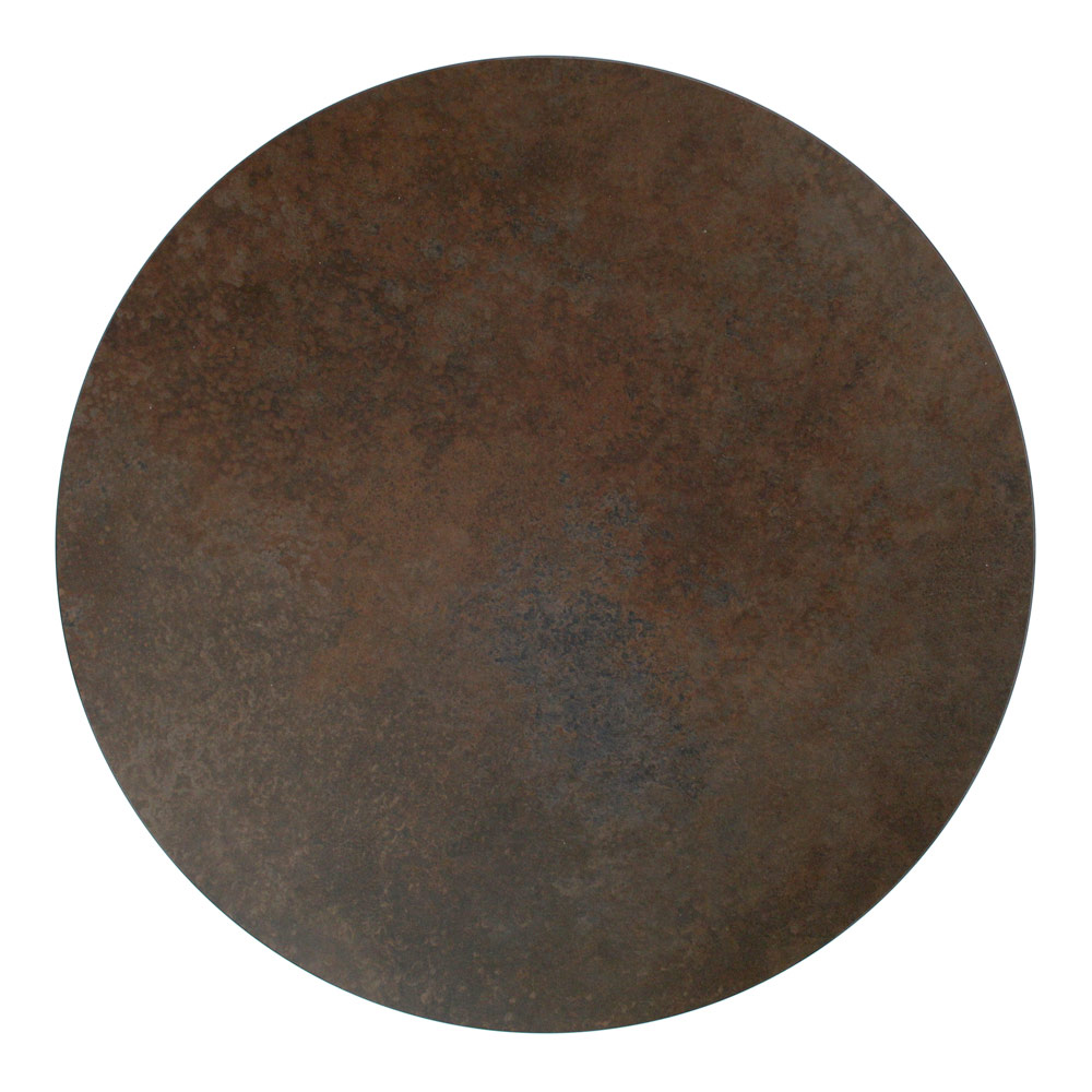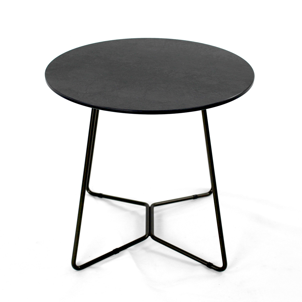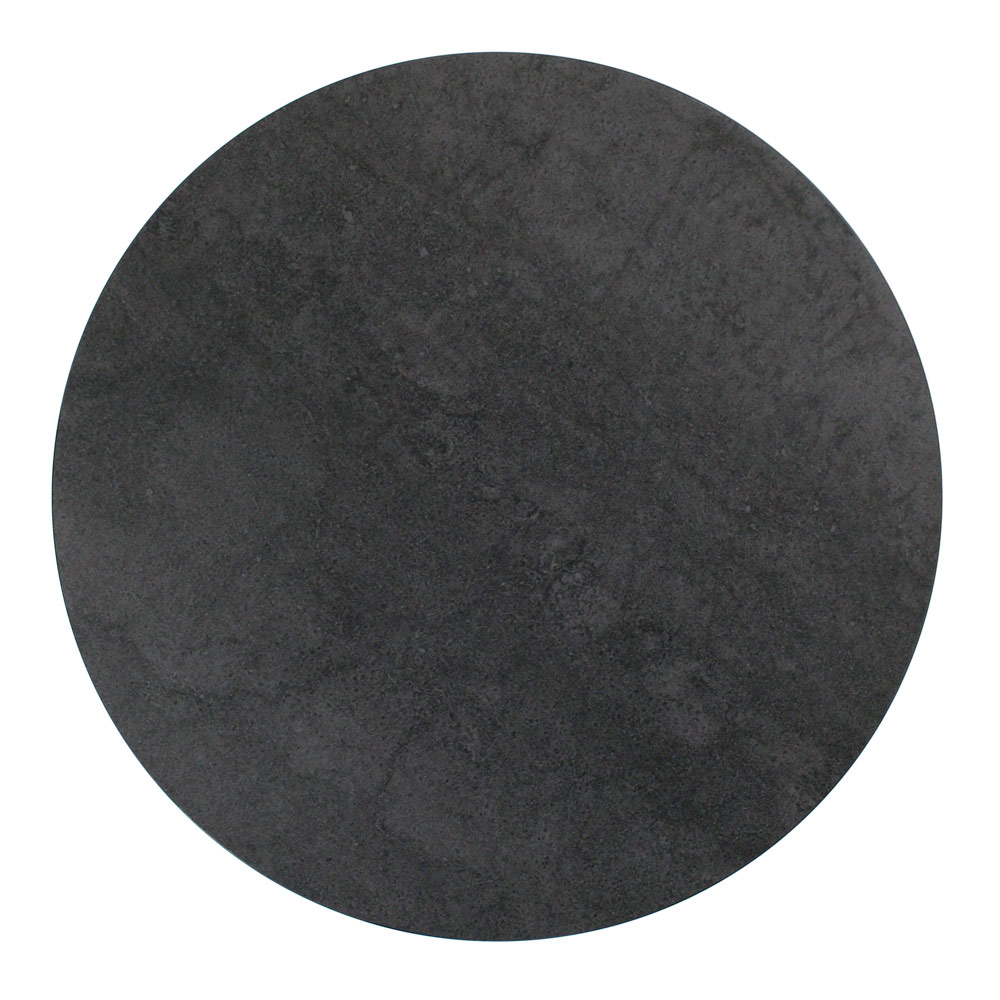 Kulatý konferenční stolek s lakovanou ocelovou základnou a horní deska z porcelánové kameniny.