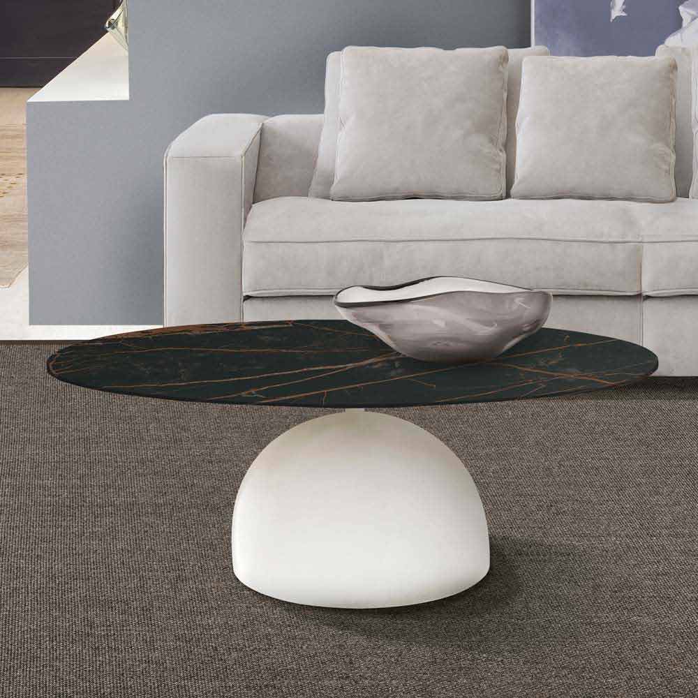 Konferenční stolek s keramickou deskou a kovovou podnoží, vysoká kvalita Made in Italy.
