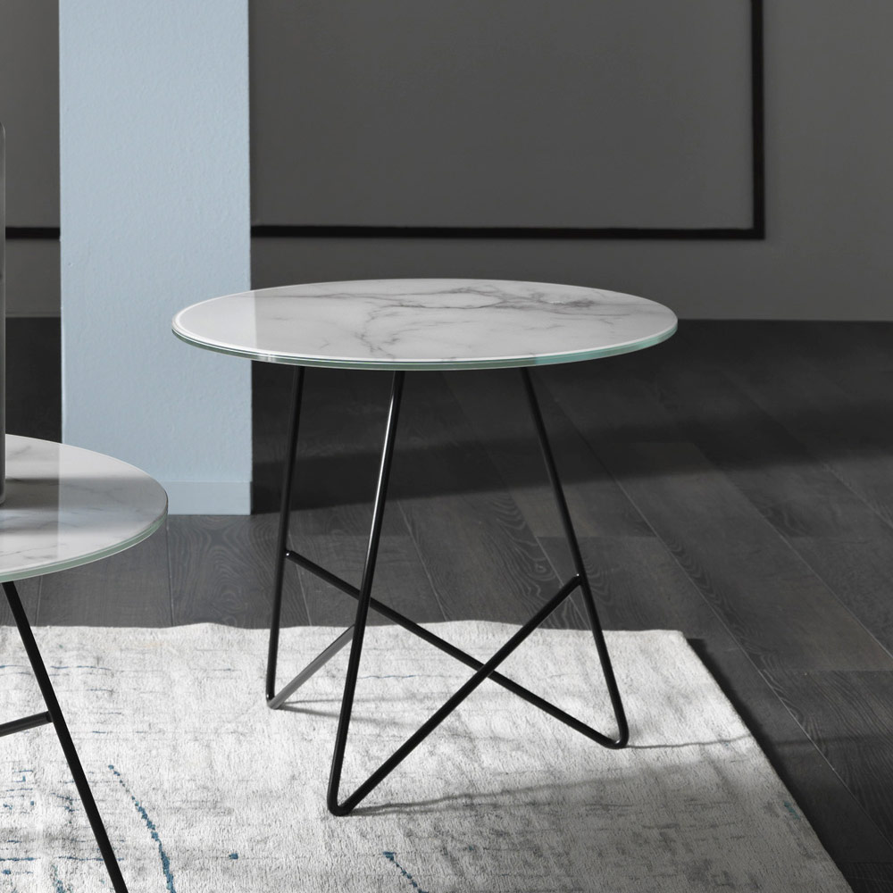 bílého nebo černého skleněného mramoru. Konferenční stolek je tak mimořádně