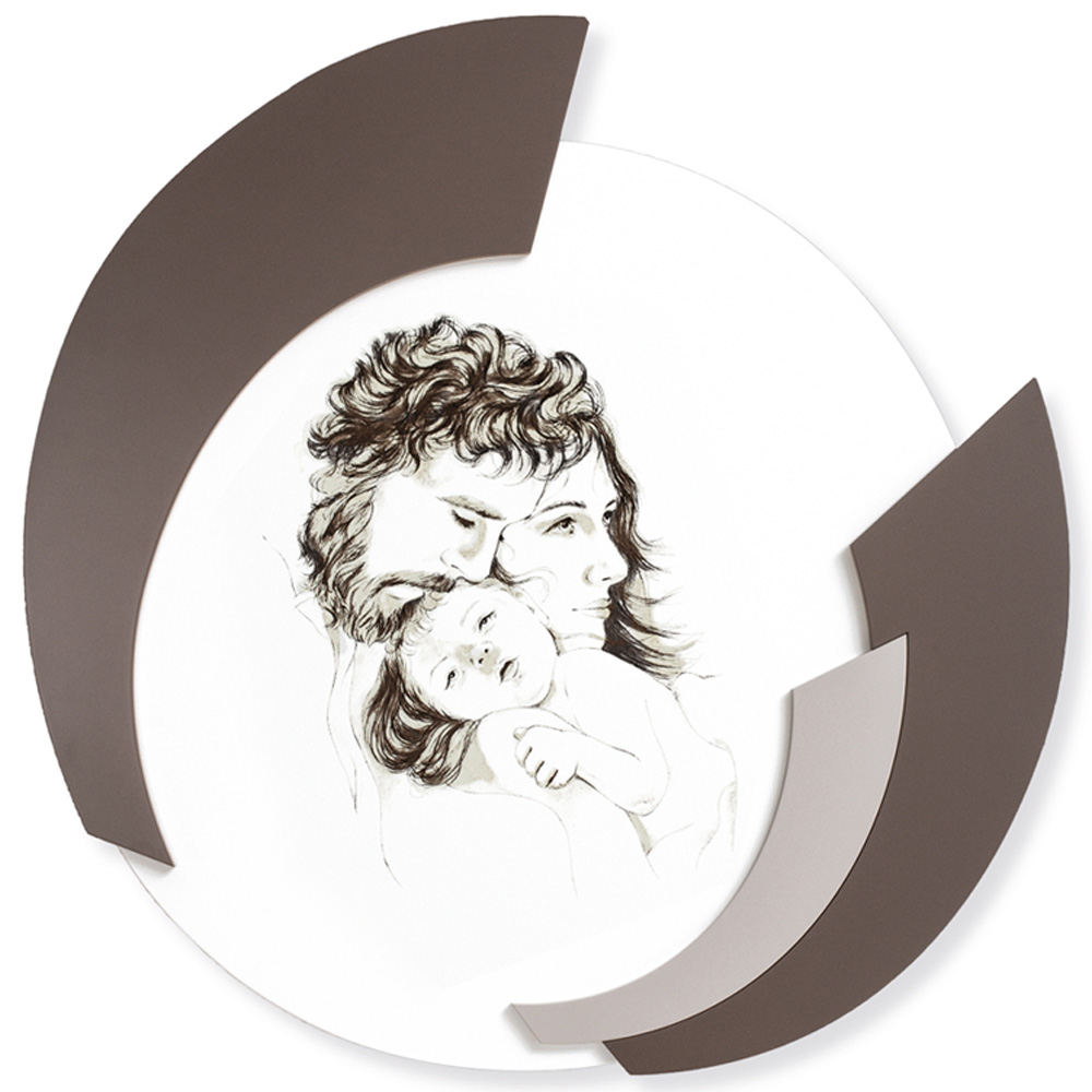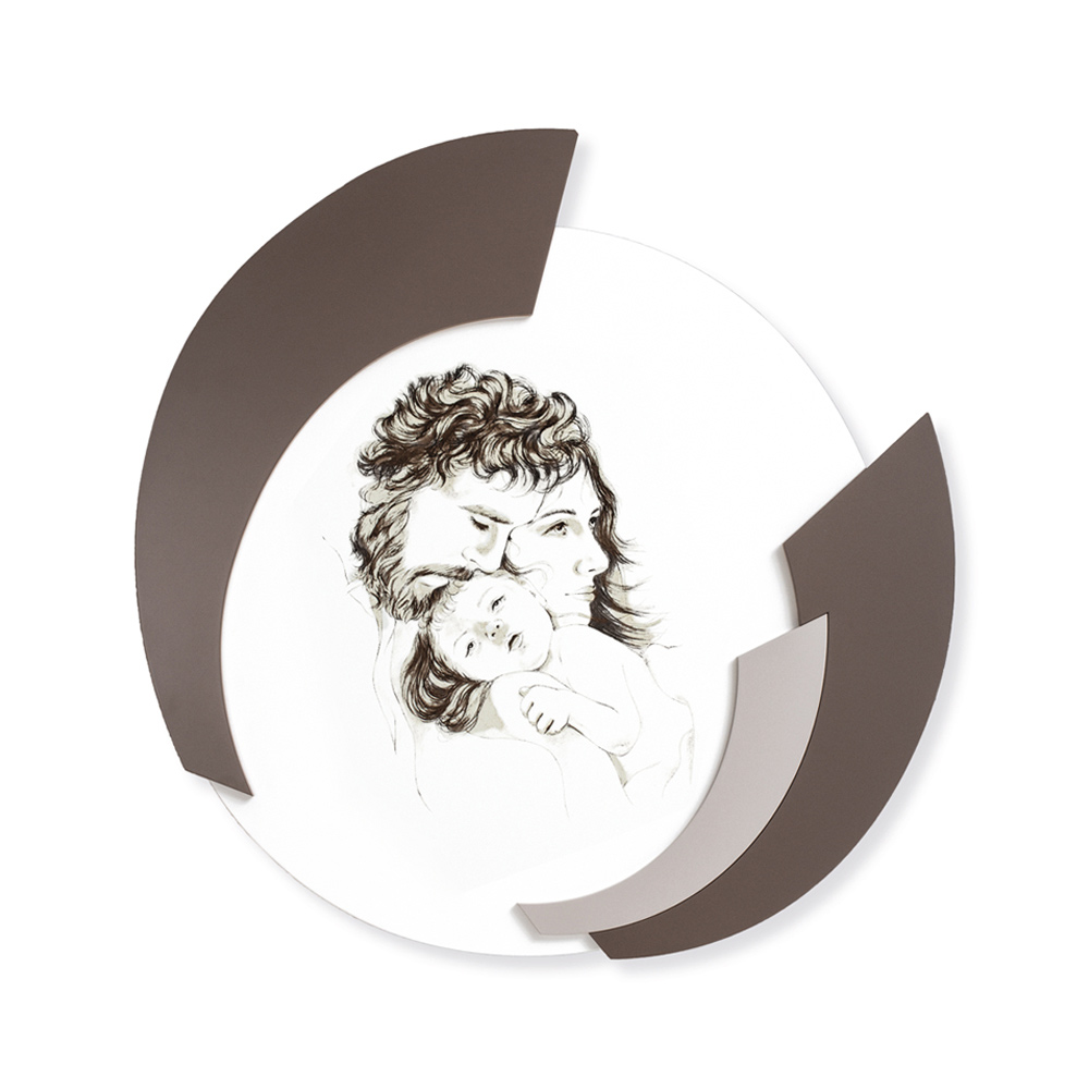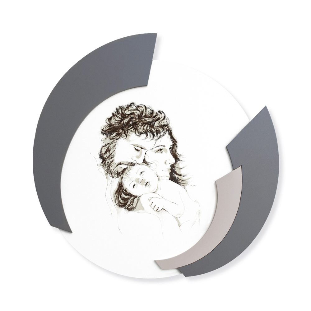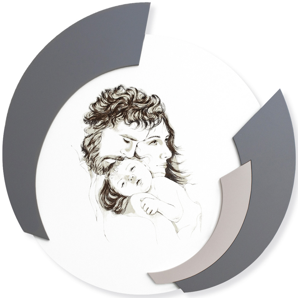 Kulaté čelo postele , které obklopuje obraz Svaté rodiny obklopený dřevěnými dekoracemi lakovanými v barvách dle vašeho výběru . Matně bílý lakovaný dřevěný panel s laserovým značením, speciální technikou, která na materiálech vytváří basreliéf. Originální ruční design v kombinaci s laserovou technologií dává život tomuto dílu rytému na několika úrovních.