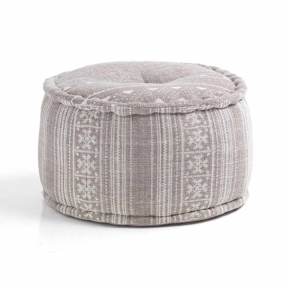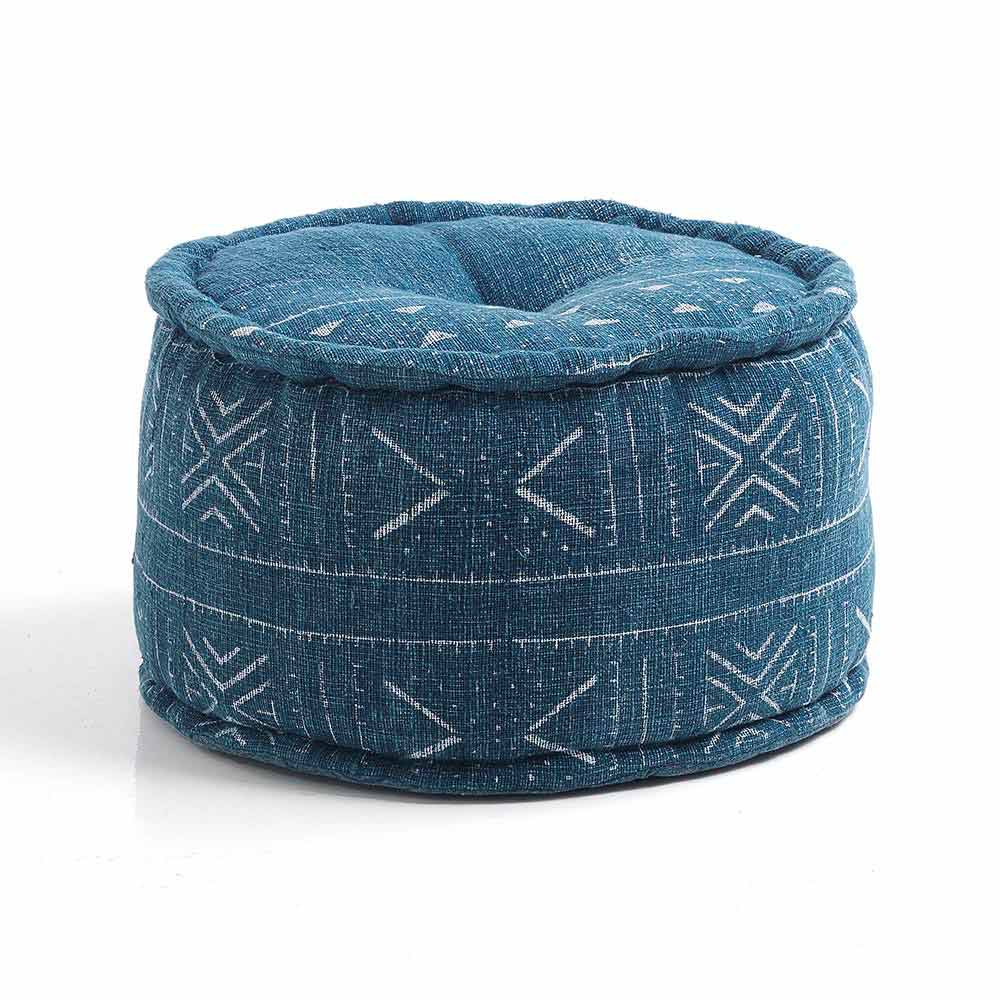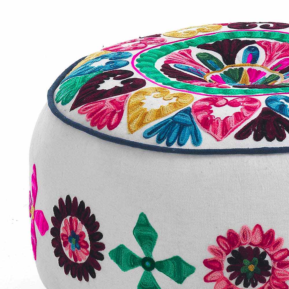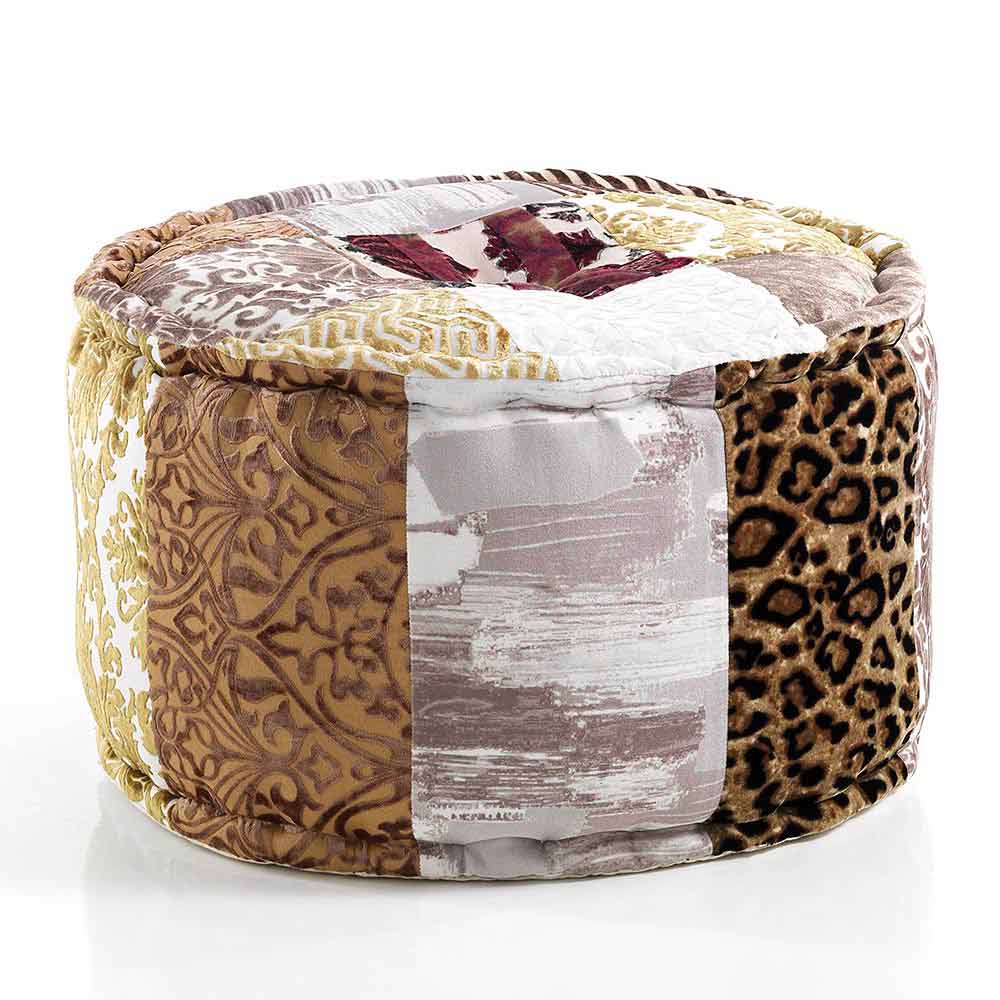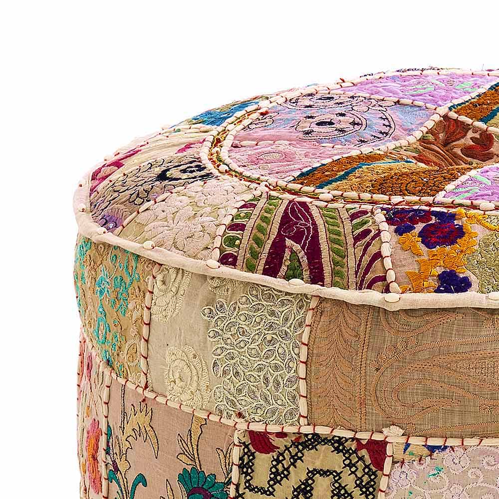 Kulatý pouf etnického designu v Patchwork Fabric nebo Velvet - Fiber