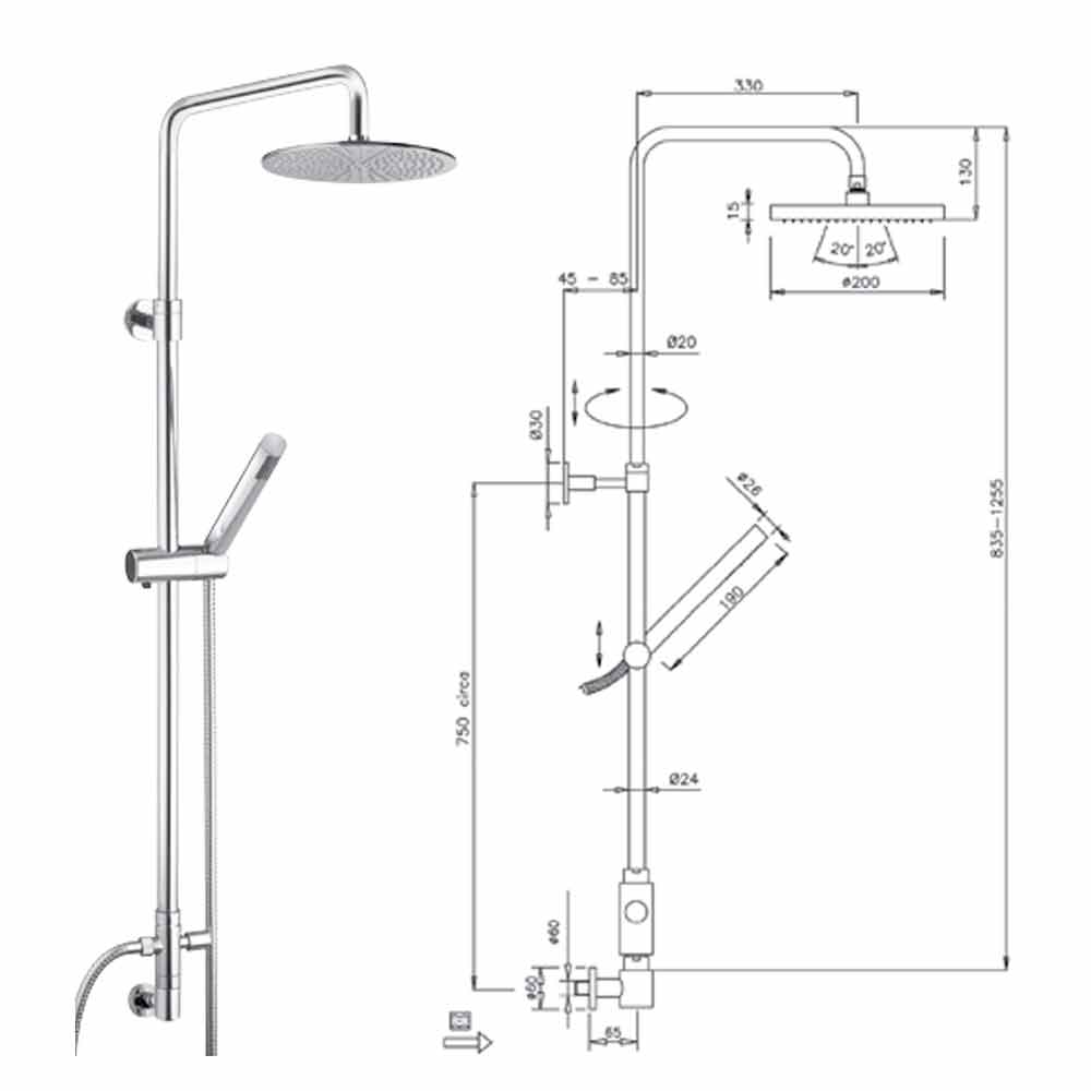 - sprchový sloup z chromované mosazi kruhového průřezu;