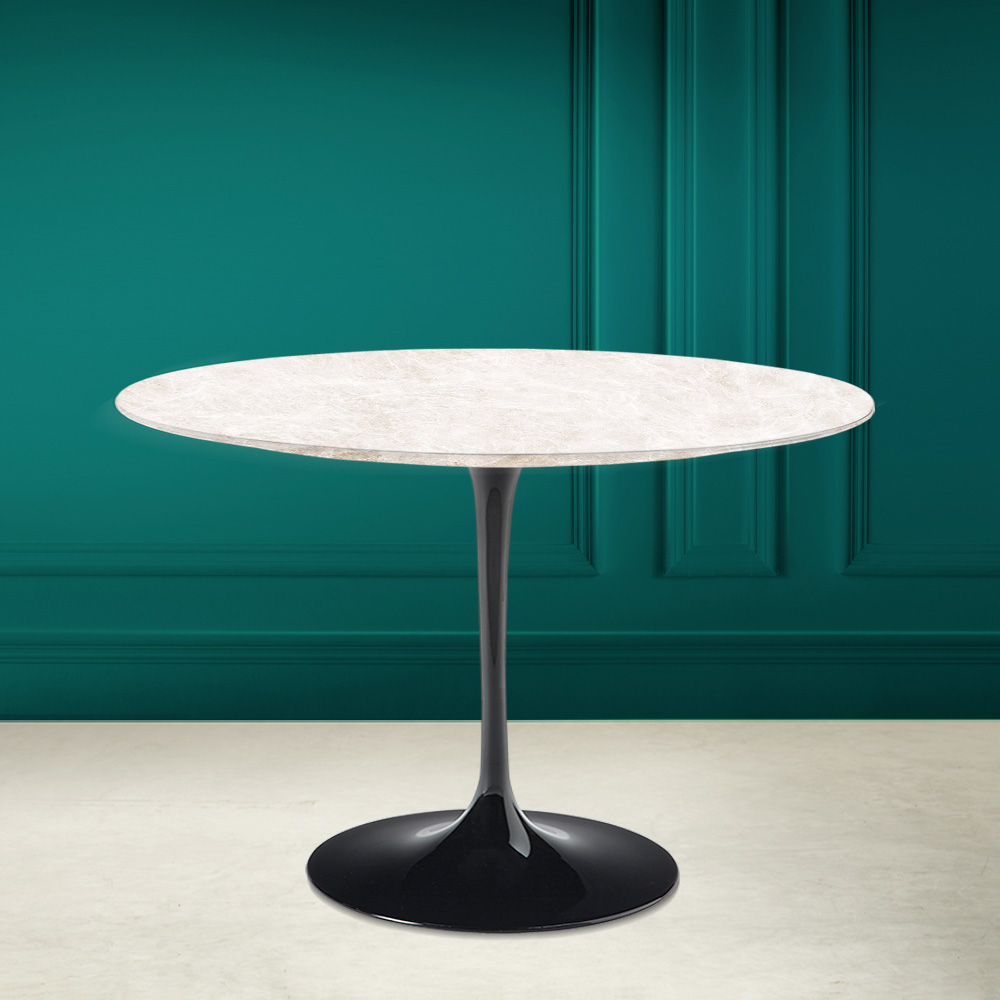 Jídelní stůl s kulatou deskou z diamantově krémové keramiky Made in Italy