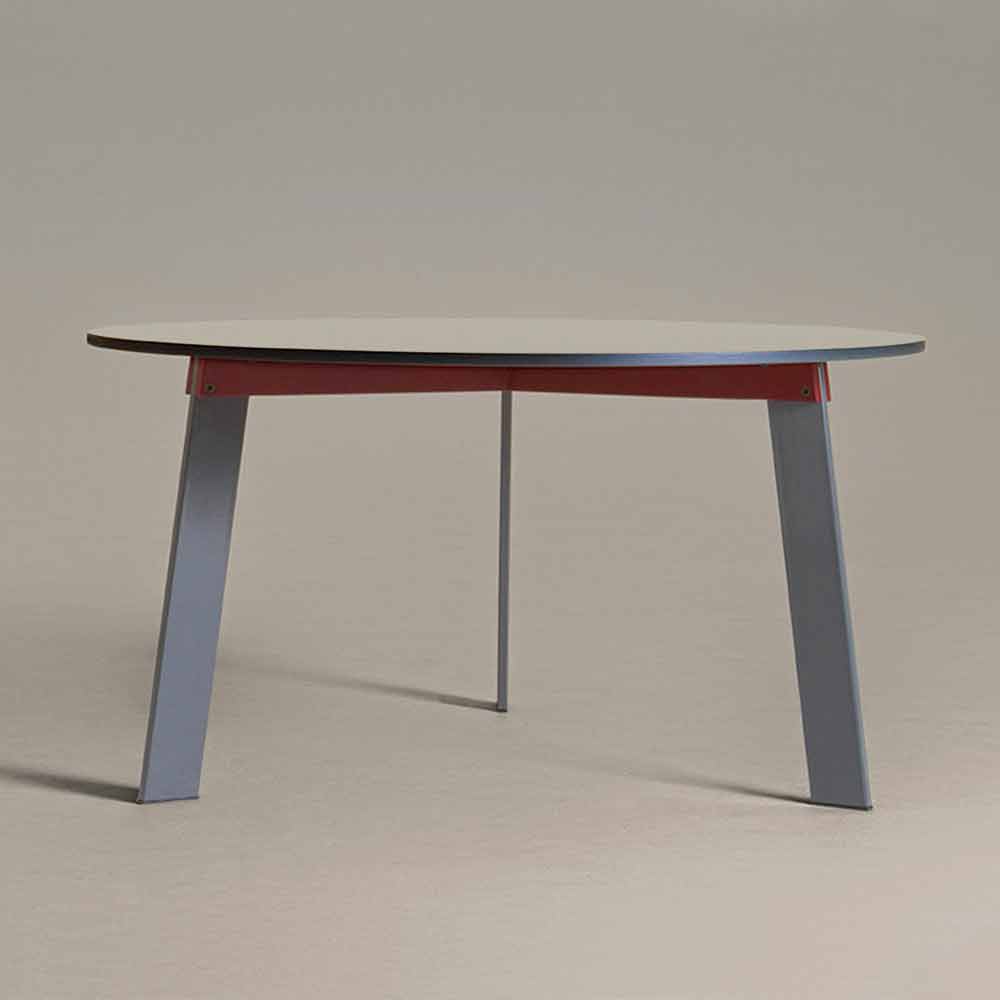 Moderní kulatý ocelový stůl s křížovou konstrukcí a MDF deskou, barevné provedení vyrobené v Itálii.