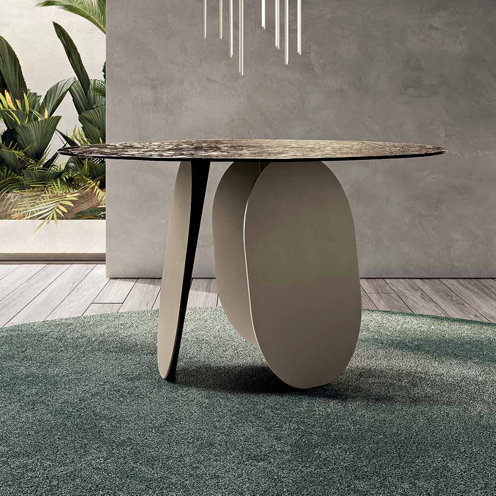 K dispozici ve dvou průměrech, díky svému kulatému tvaru je ideální pro povzbuzení společenské nálady, ideální do moderních obývacích pokojů a sofistikovaných kuchyní.