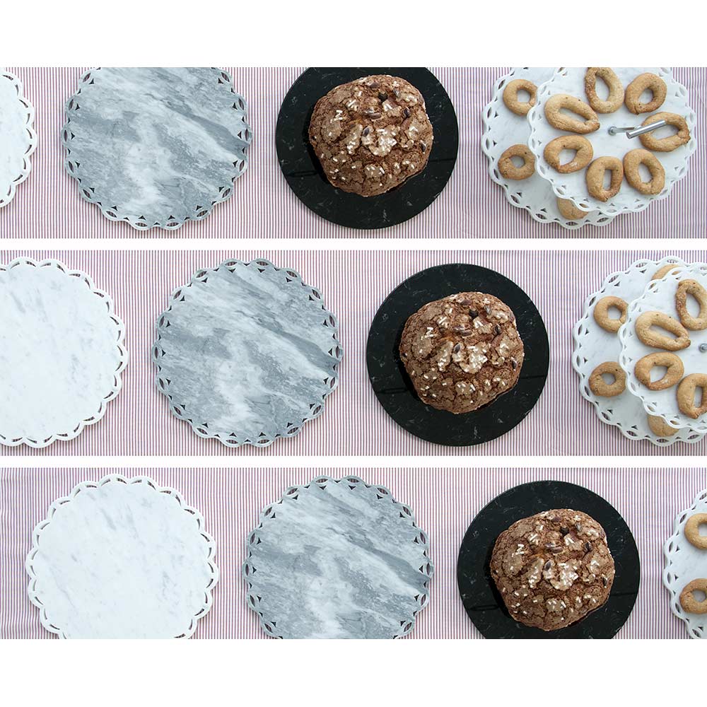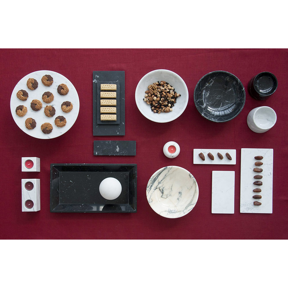Bílý mramor Carrara používaný k výrobě těchto produktů dodává lom Poggio Silvestre, zdroj prvotřídního mramoru klasifikovaného od minulého století, zatímco černý mramor Marquinia se získává ze španělských lomů a vyznačuje se nepravidelnou barvou žil bílá nebo světle šedá, které dodávají mramoru originální a moderní vzhled.