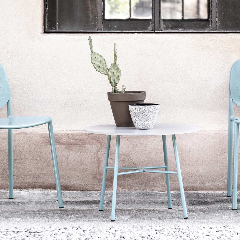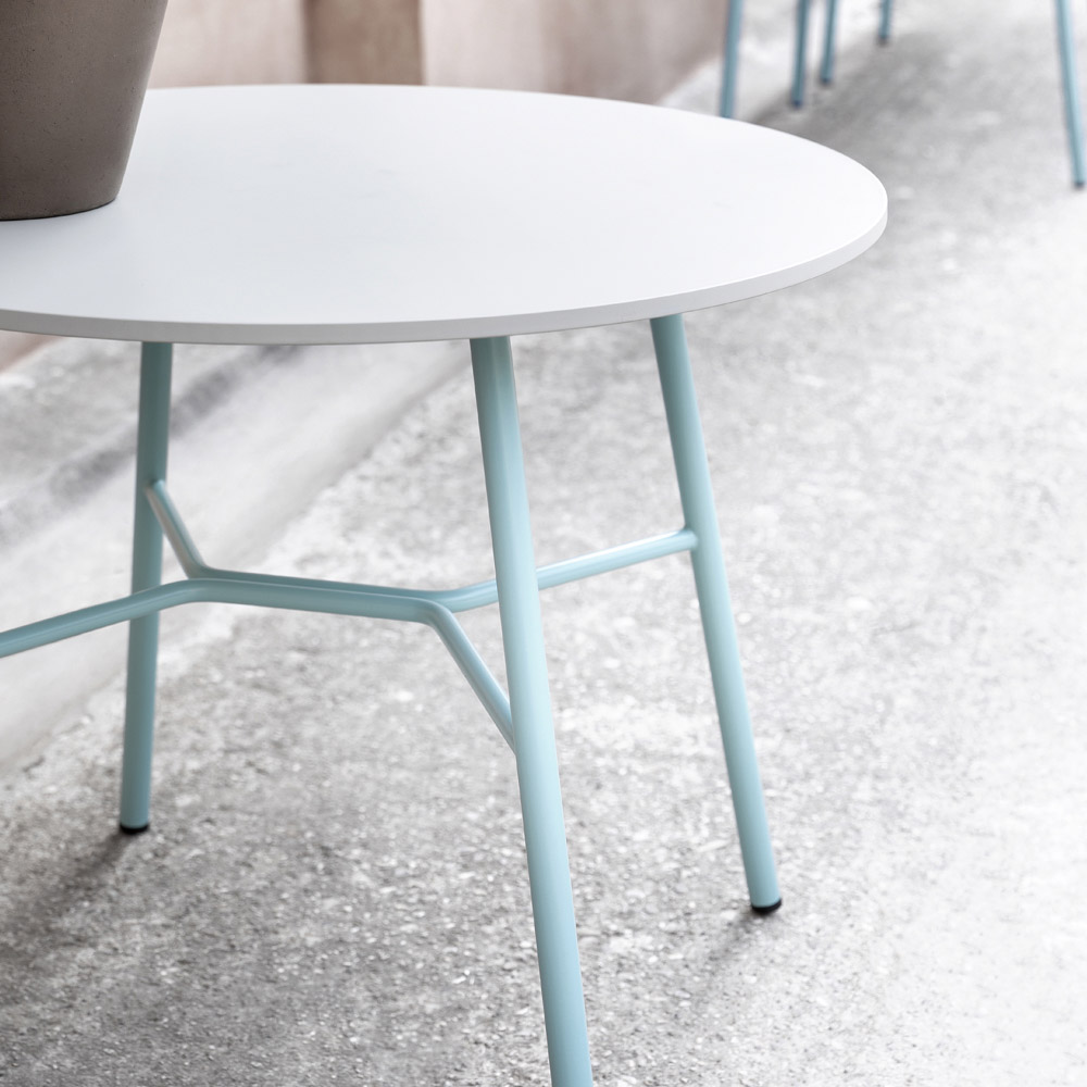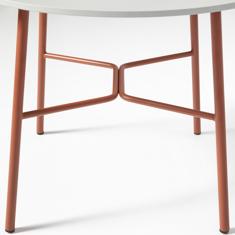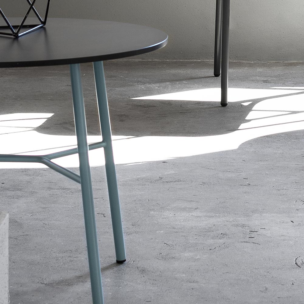 Kulatý venkovní konferenční stolek z HPL a lakovaného kovu Made in Italy.