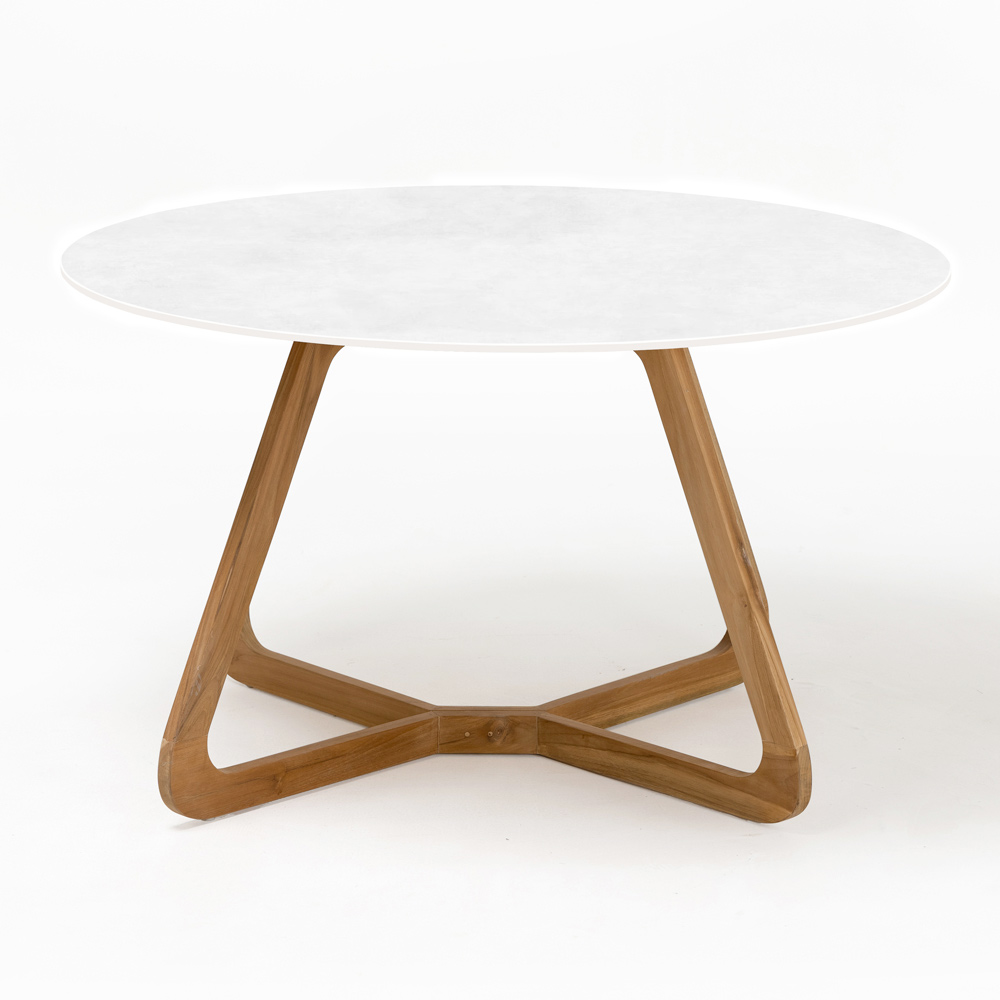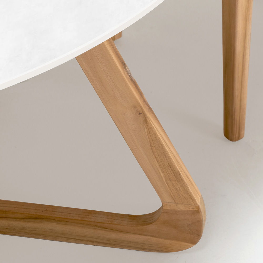 Dřevěná základna dodává kontrast tepla a textury a vyvažuje svěžest keramické desky s její bohatostí a pevností. Tato kombinace materiálů je nejen esteticky přitažlivá, ale také nabízí výjimečnou trvanlivost a odolnost vůči povětrnostním vlivům, díky čemuž je stůl ideální pro každodenní venkovní použití.