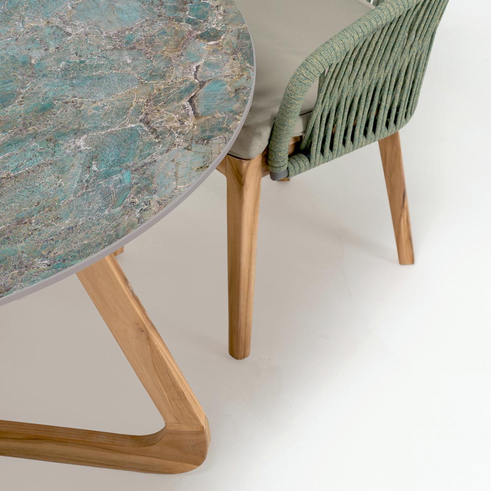 Kulatý zahradní stůl ze dřeva a keramiky, vyrobený v Itálii