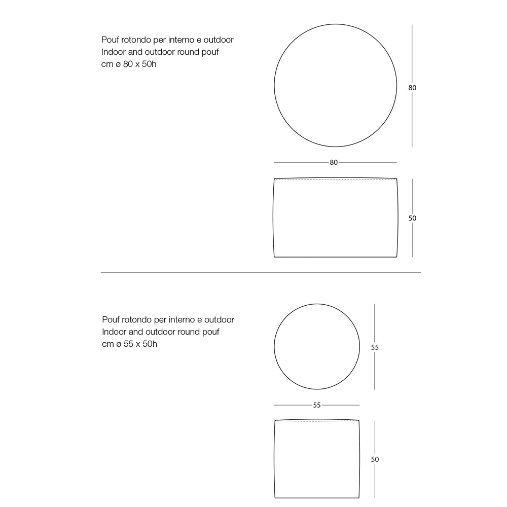 Kulatý pohovka pro vnitřní i venkovní použití v modrém, holeně šedém nebo konopném polyesterovém vlákně, kvalitní výrobek vyrobený v Itálii.