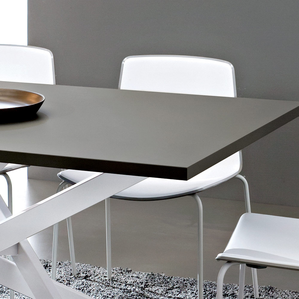 jednoduchou a všestrannou duší, jehož design je obohacen a ojedinělý zvláštním tvarem nohou, které díky neobvyklému tkanému tvaru dodávají stolu skutečně