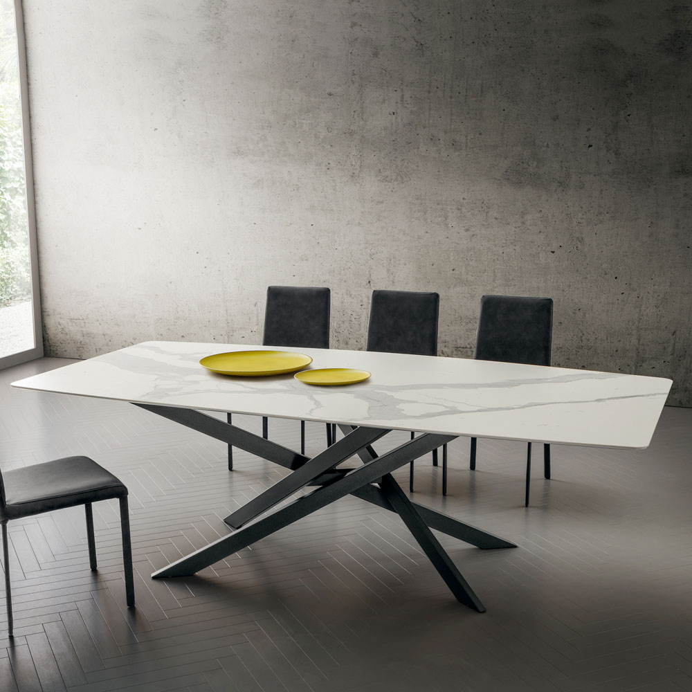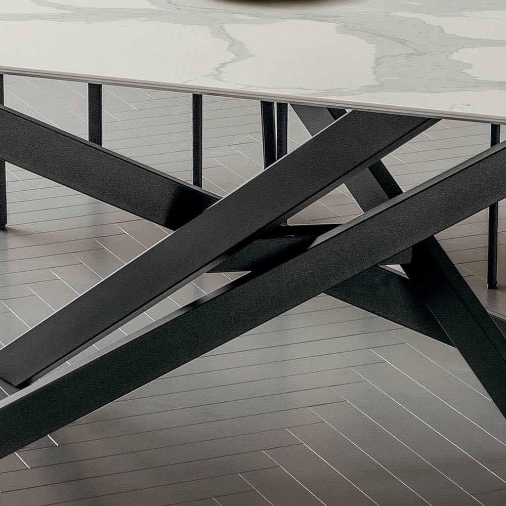 vytříbenou a originální estetikou , která charakterizuje každé prostředí, přináší elegantní a rafinované prvky, které jsou moderní a kreativní zároveň. Zvláštností tohoto stolu je základna se zkříženými nohami, která obohacuje jeho design o revoluci ve stylu celé místnosti, jejímž hlavním hrdinou se stává, a podmaní si každou pozornost. Nádherná sudová deska dotváří konečný vzhled stolu a dodává