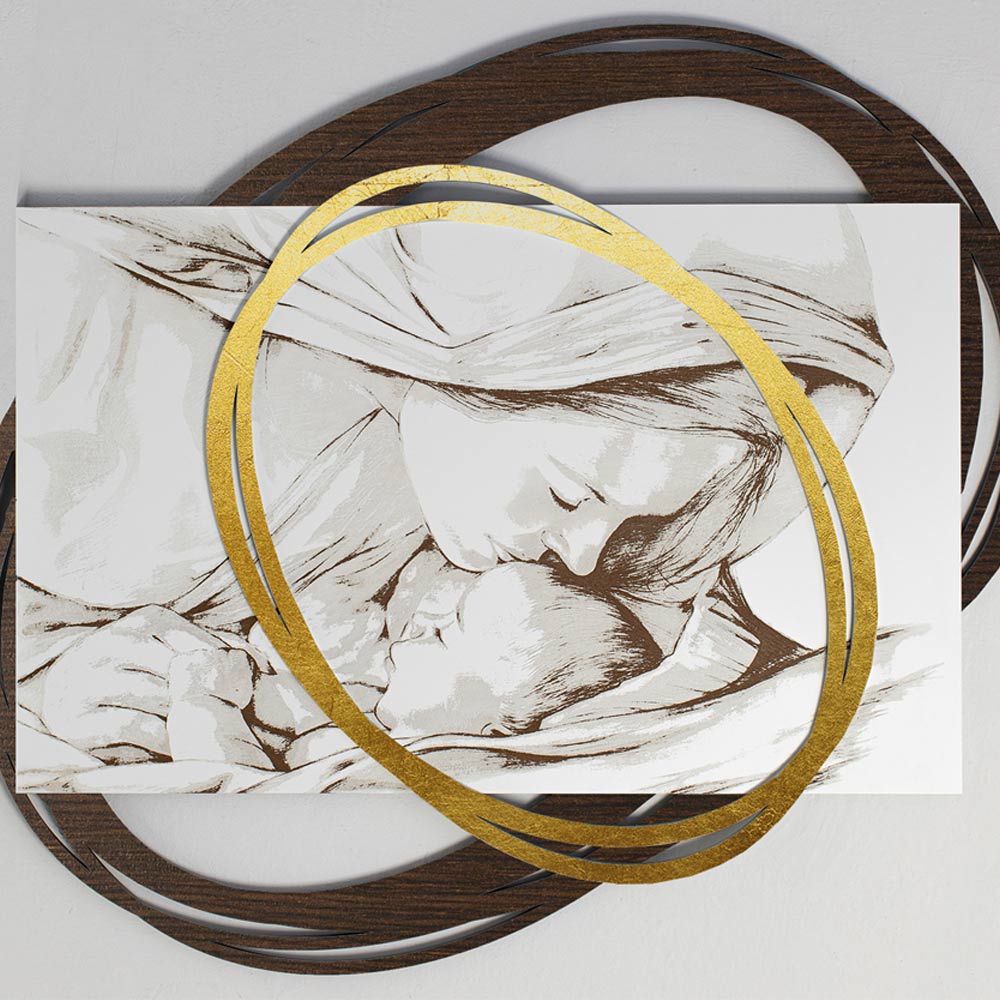 Tento obraz byl navržen tak, aby maximalizoval něhu polibku, který Madona dává Ježíšovi. Jednoduché, ale přesné linie se rodí z rukou italských mistrů, kteří tento design vytvořili s péčí a obětavostí, díky čemuž je jedinečný a nenapodobitelný. Toto čelo v sobě spojuje kvalitu materiálů a technik s možností výběru povrchových úprav, které nejlépe vyhovují každému designu.