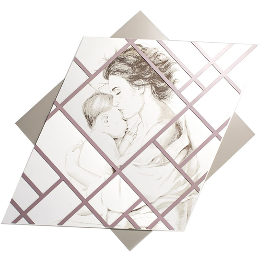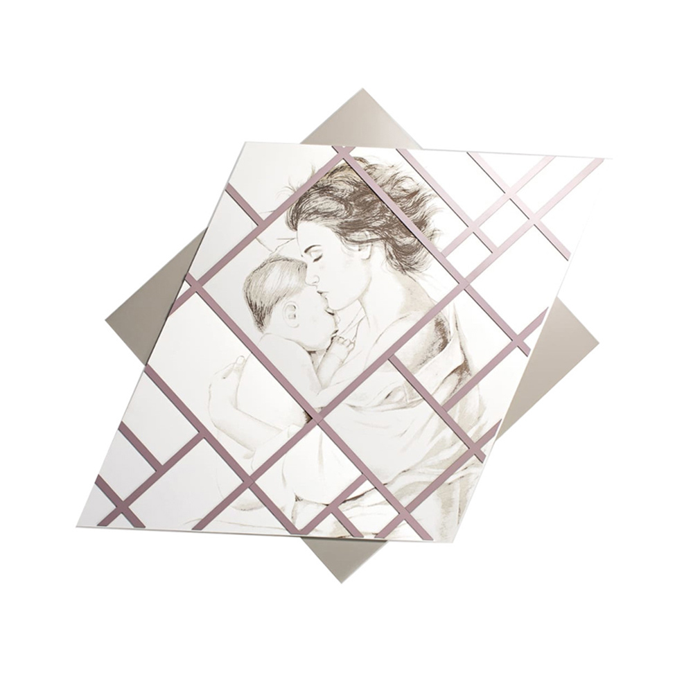 Rám, který vytváří jedinečnou atmosféru, která se přizpůsobí jakémukoli stylu a potřebám designu, barevné odstíny jsou navrženy tak, aby byly univerzální a lze je umístit jak do moderních/městských, tak do klasických elegantních domácností. Sladkost, která pochází z této reprezentace, pochází z dovednosti italských mistrů řemeslníků, kteří ručně nakreslili něžné objetí až do nejmenších detailů, čímž dali život jedinečnému a vzrušujícímu produktu.