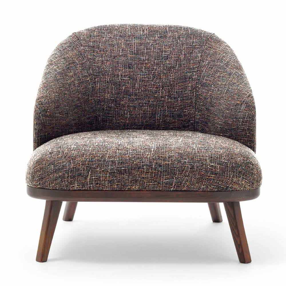 Křeslo do obývacího pokoje z látky s dřevěným podstavcem Made in Italy, luxusní.