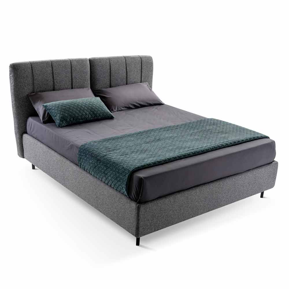 Luxusní moderní manželská postel s látkovým úložným boxem a kovovými nohami, ručně vyrobená v Itálii.