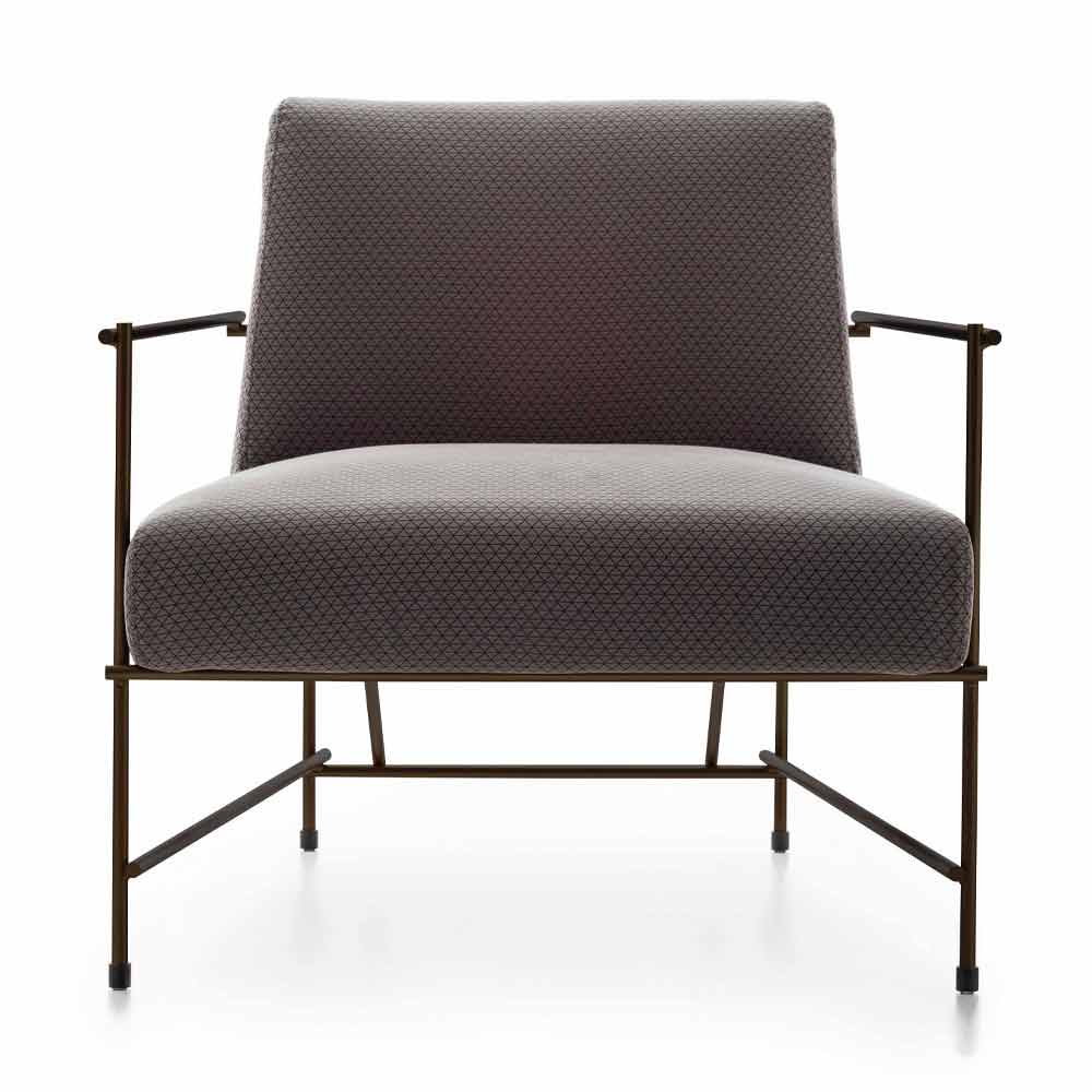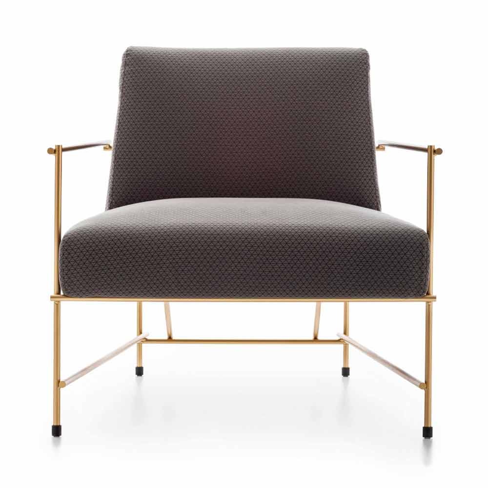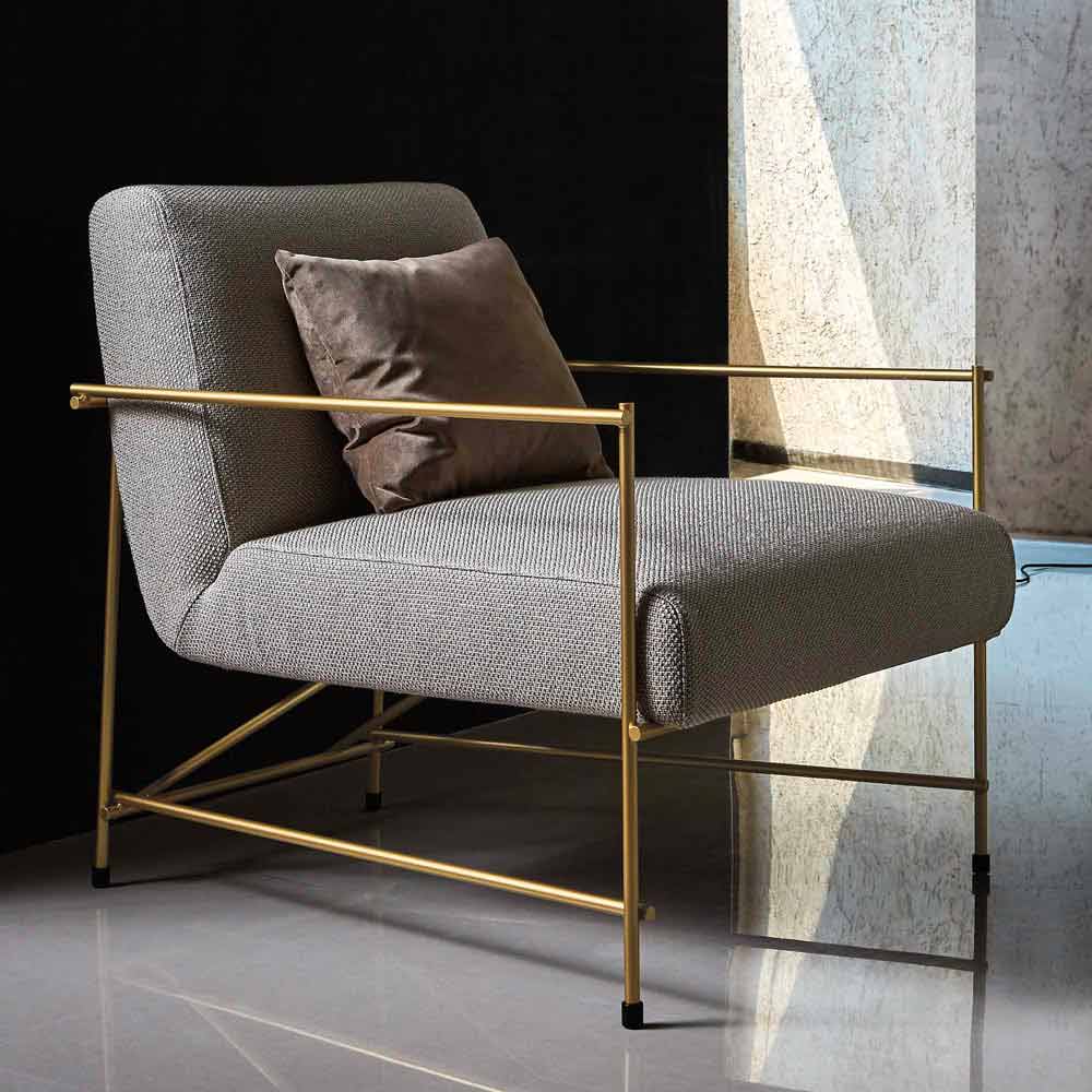 Látkové křeslo s kovovou konstrukcí Vyrobeno v Itálii, jemné.