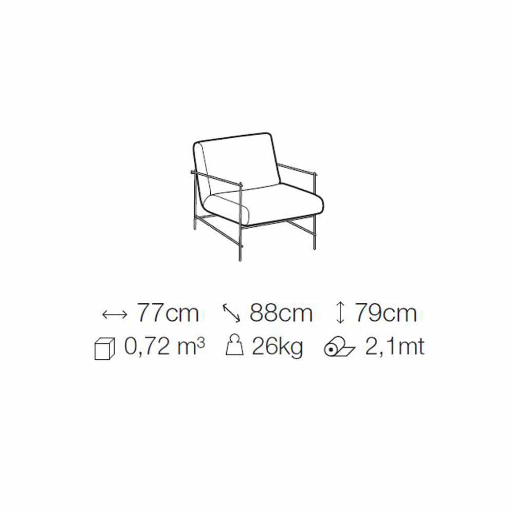 lakovanou kovovou konstrukcí , skořápkou v dřevěných deskách z latě a polštáři čalouněnými nedeformovatelnou polyuretanovou pěnou pokrytou Tecnoform. Sedák a opěradlo ze zcela odnímatelné