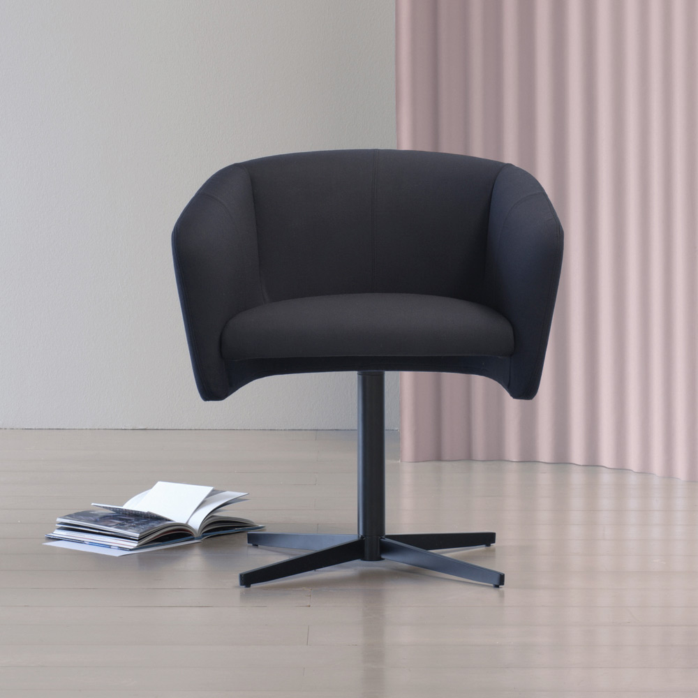 Křeslo vyrobené v Itálii s otočnou základnou z černě lakovaného kovu a čalouněným sedákem potaženým látkou . Tento bytový doplněk s obálkovým a pohodlným designem, který je ideální do obývacího prostoru, vaší pracovny nebo kanceláře, se vyznačuje jednoduchými liniemi, které oživují produkt se silnou osobností díky úžasnému spojení mezi moderností kovu a elegancí textilie. a jeho barvy, čímž se podařilo převrátit estetiku místnosti a dát jí extrémně avantgardní nádech.