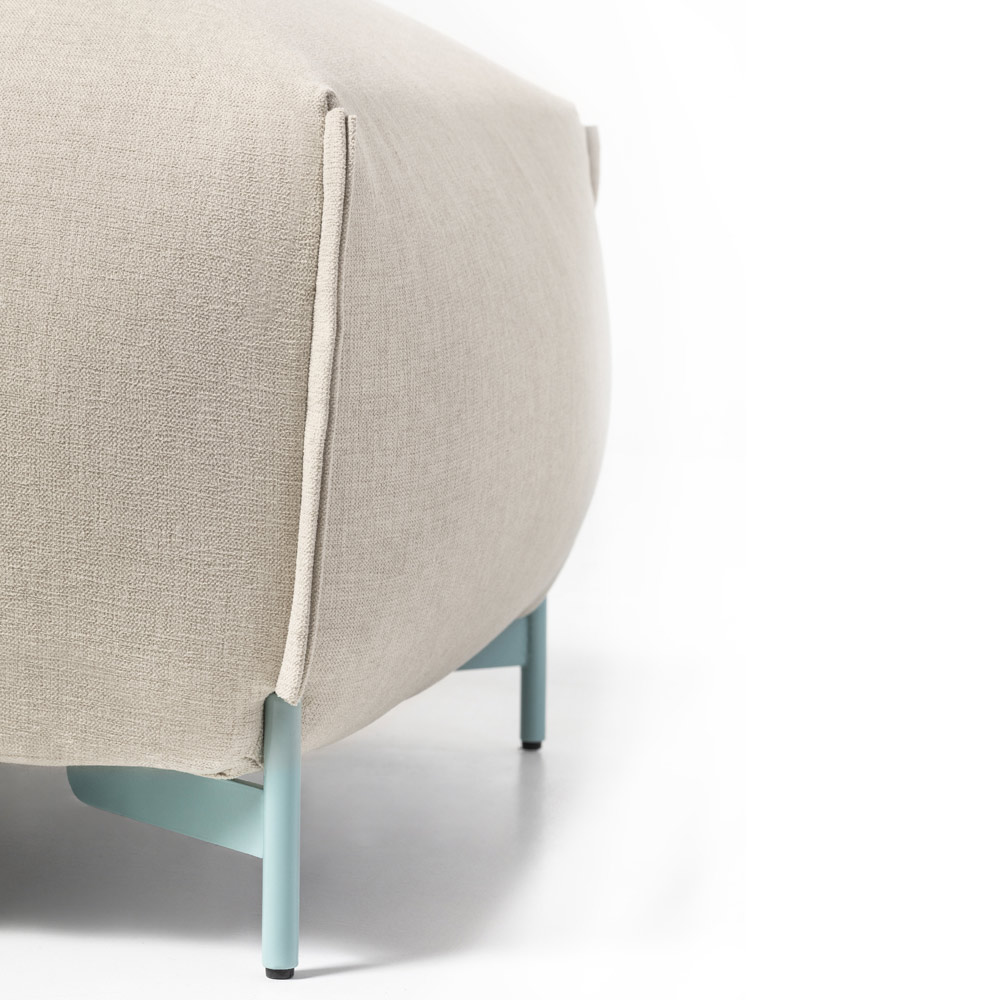 Venkovní pouf potažený látkou s kovovými nožičkami Made in Italy.