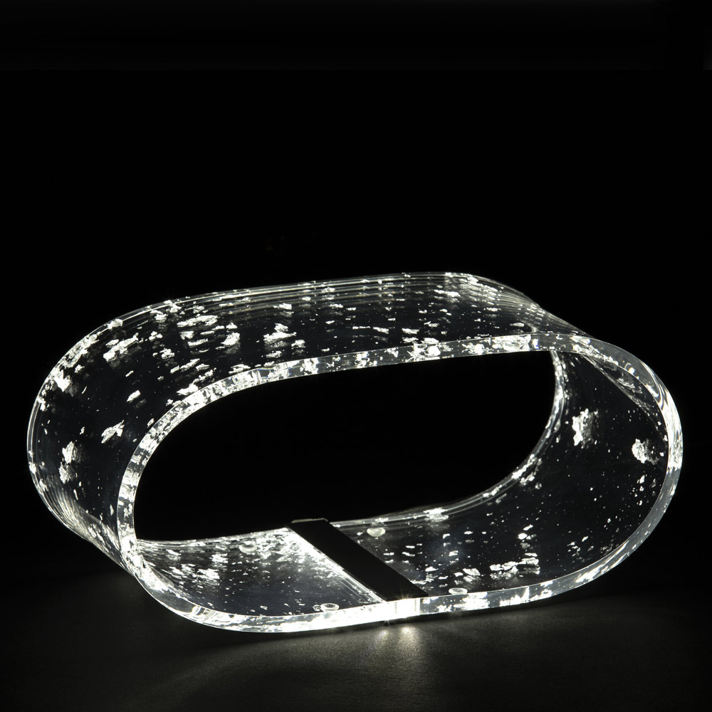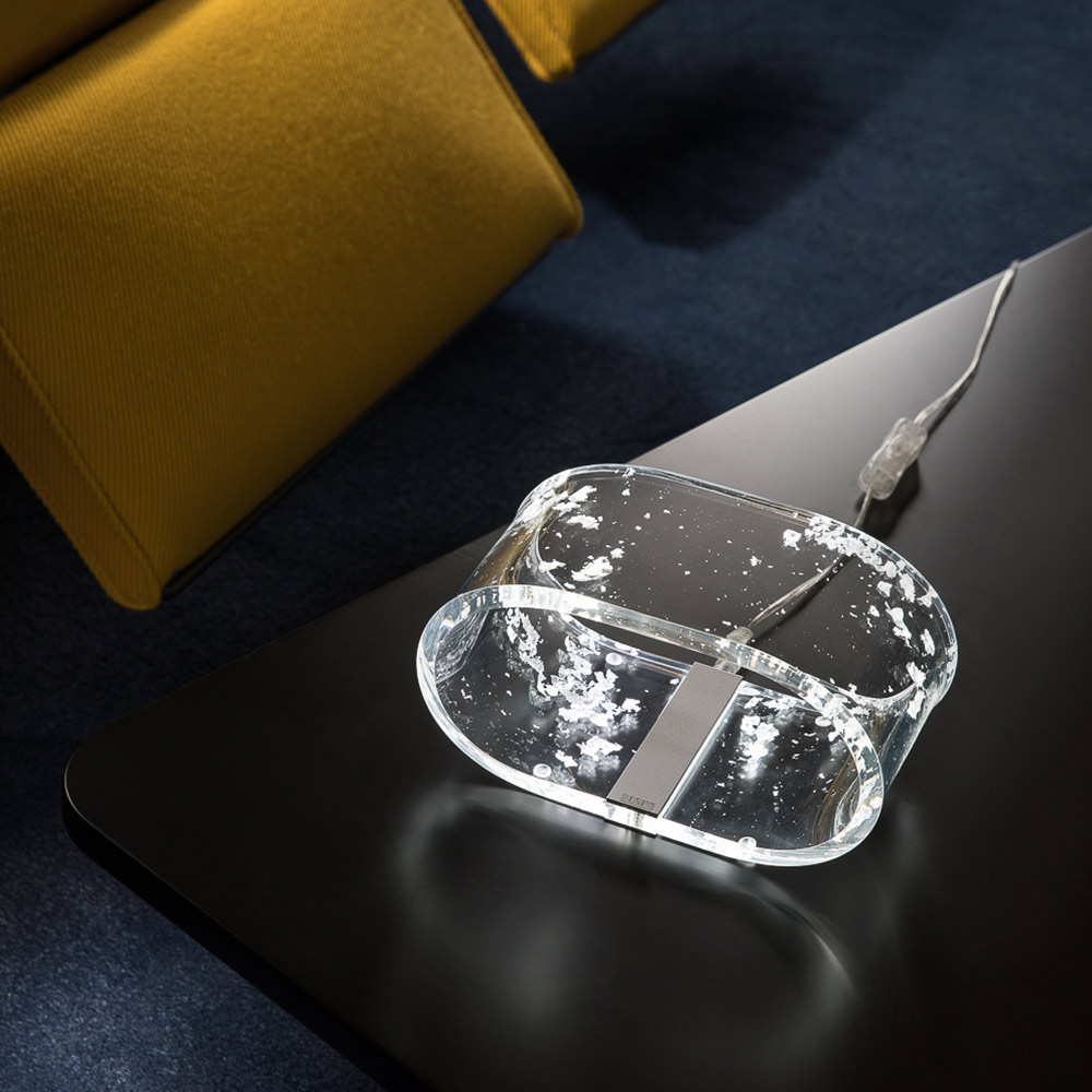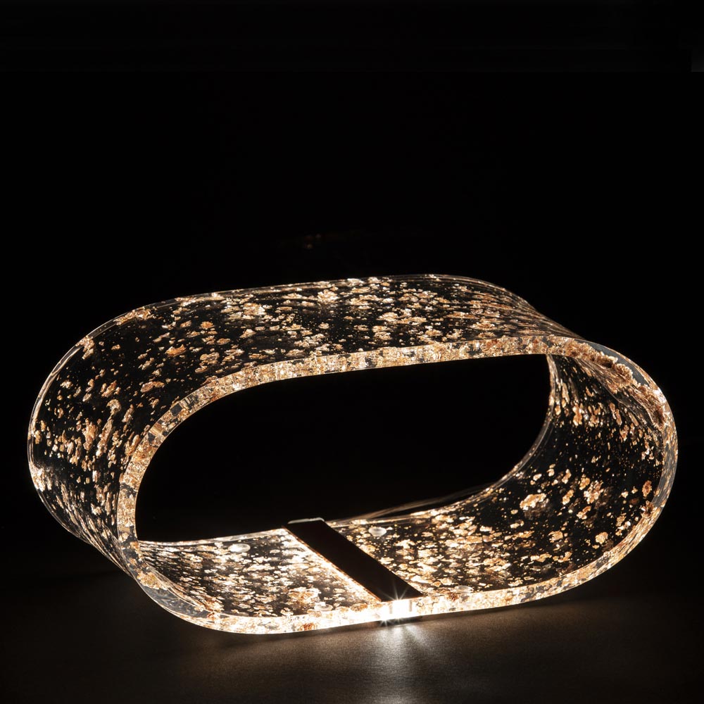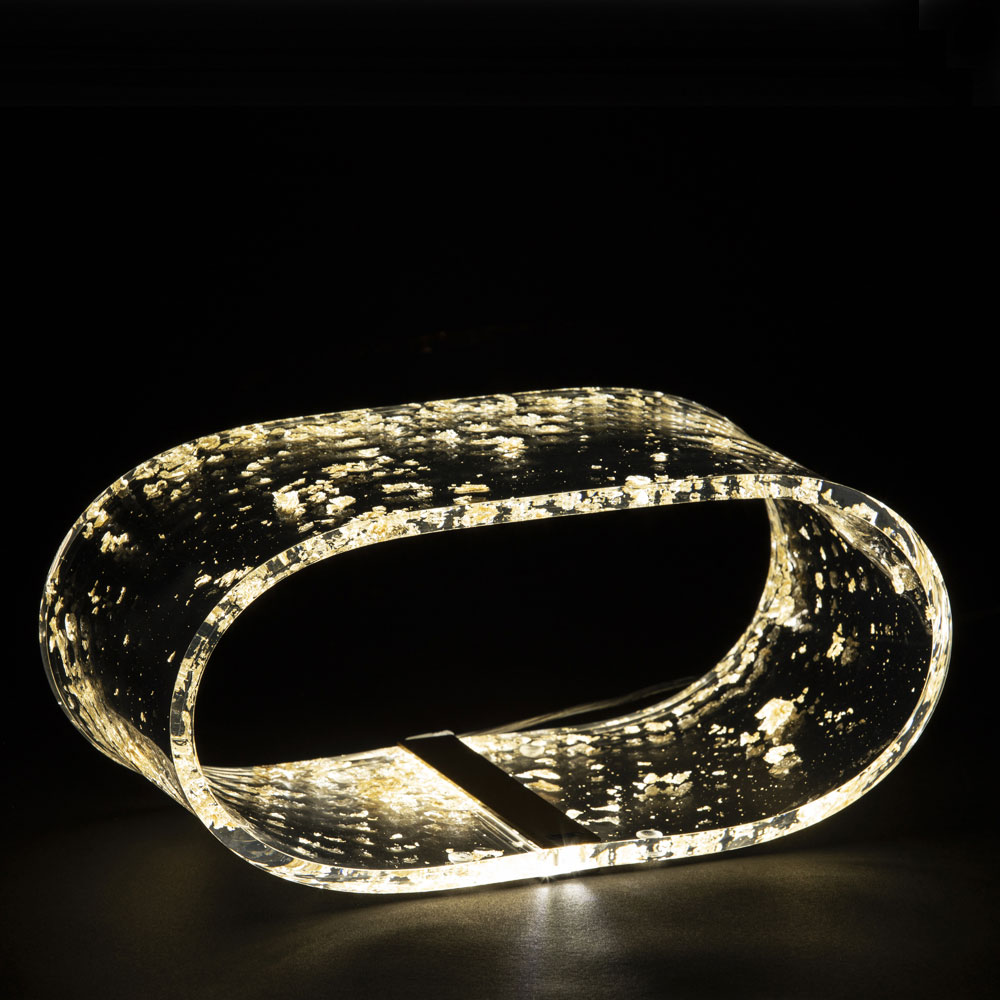 Stolní lampa z akrylového křišťálu a zlatého, stříbrného nebo měděného plátku, 2 velikosti vyrobené v Itálii.