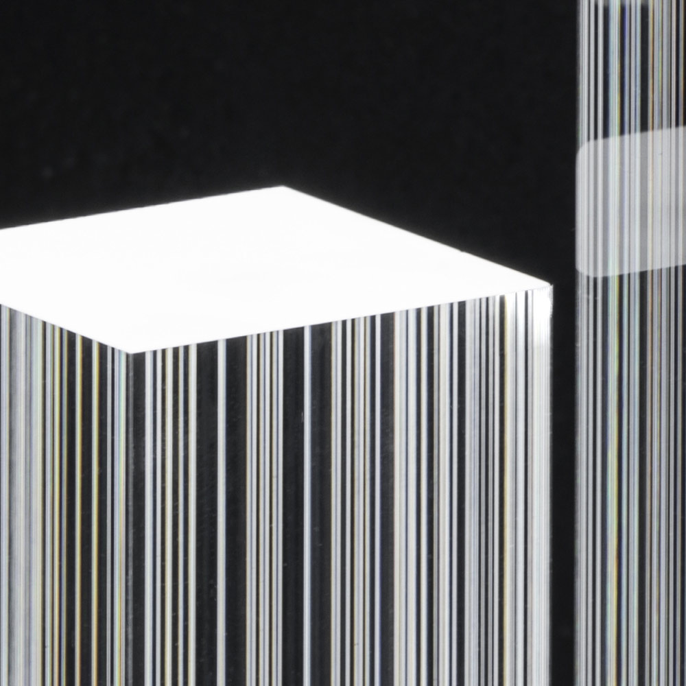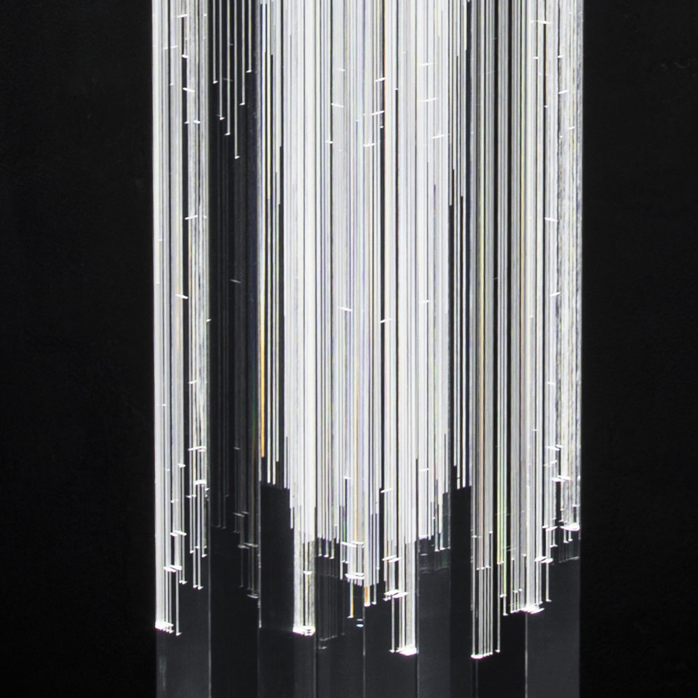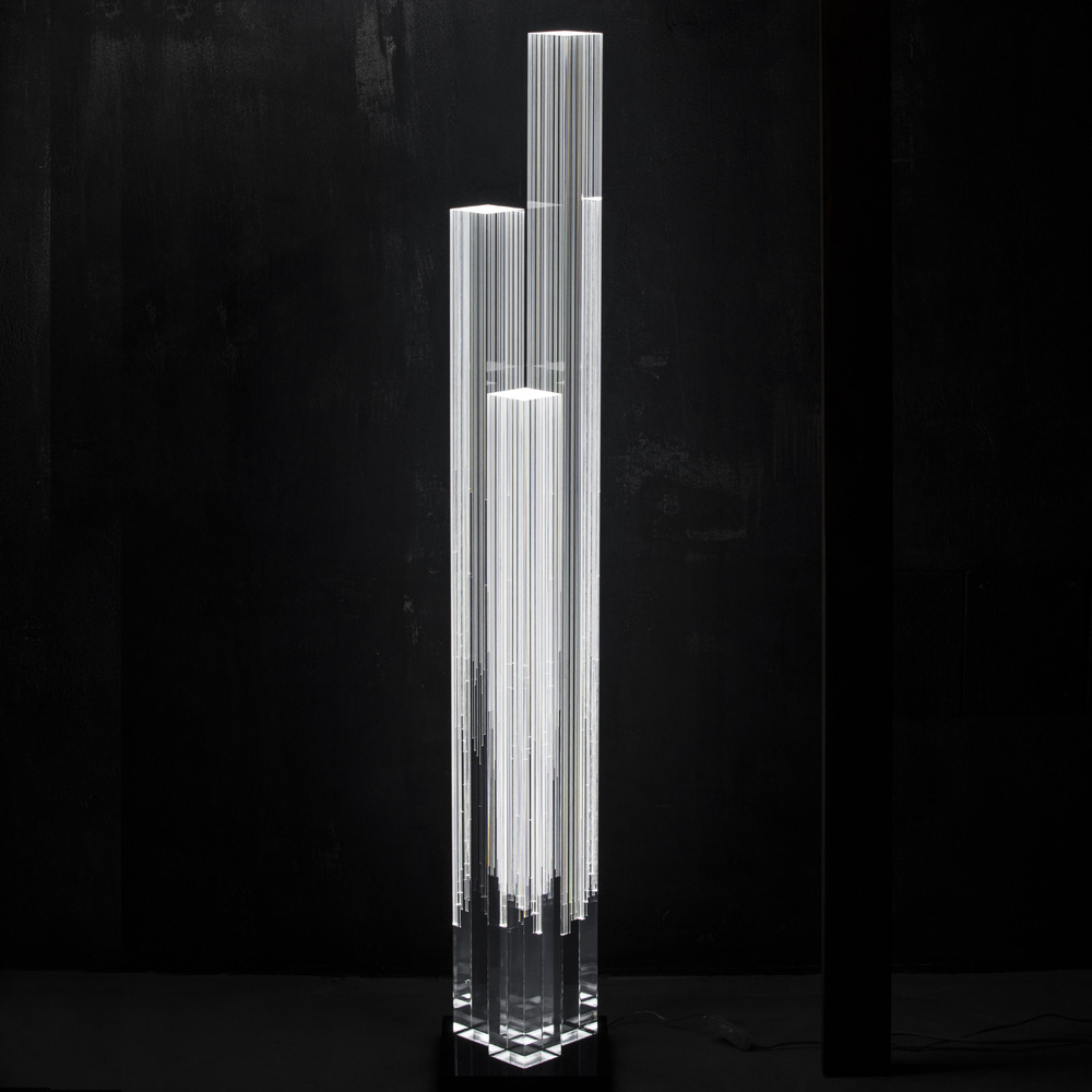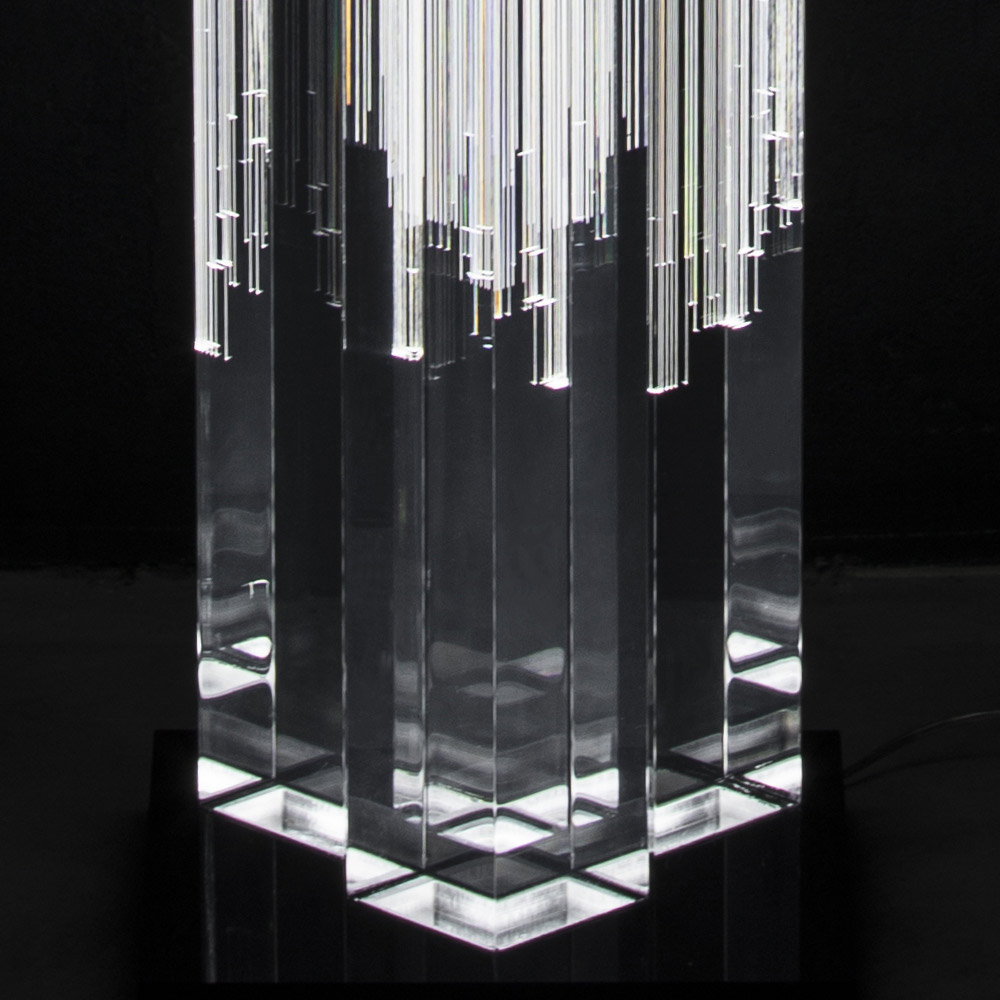 Tato stojací lampa se skládá z unikátních bloků akrylového křišťálu broušeného a gravírovaného laserovou technologií a základny s tělem LED osvětlení.