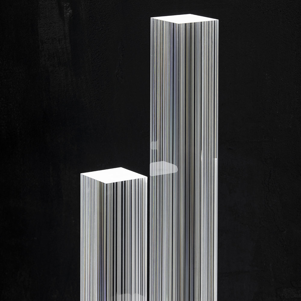 Triptych LED stojací lampa z laserem rytého akrylového krystalu vyrobeného v Itálii.