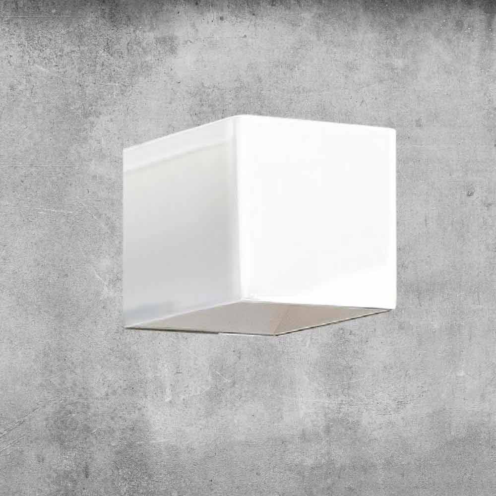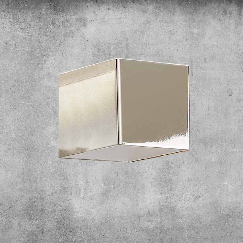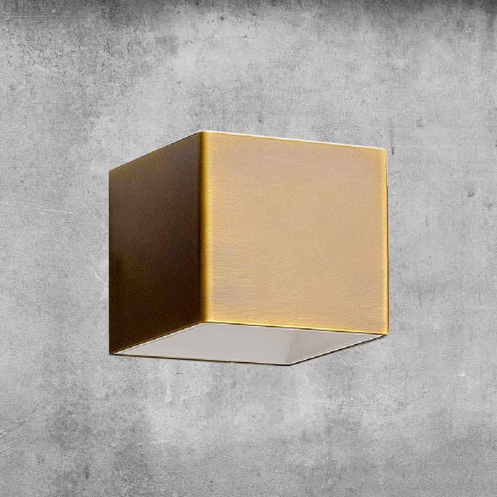 Design na stěnách: LED nástěnné svítidlo z mosazi a sádry Cubetto od Alda Bernardiho, vyrobené v Itálii.