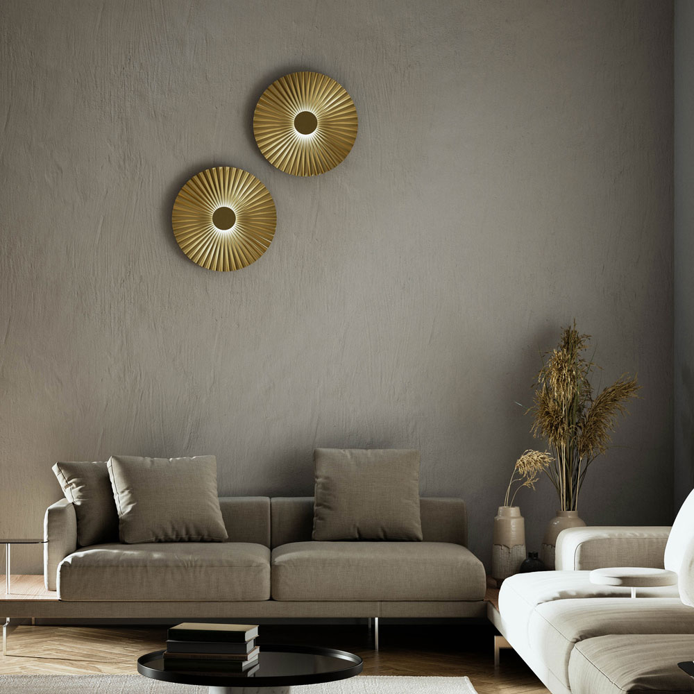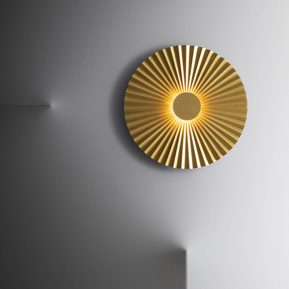 Nástěnná lampa z plisované leštěné přírodní mosazi, 2 velikosti vyrobené v Itálii.
