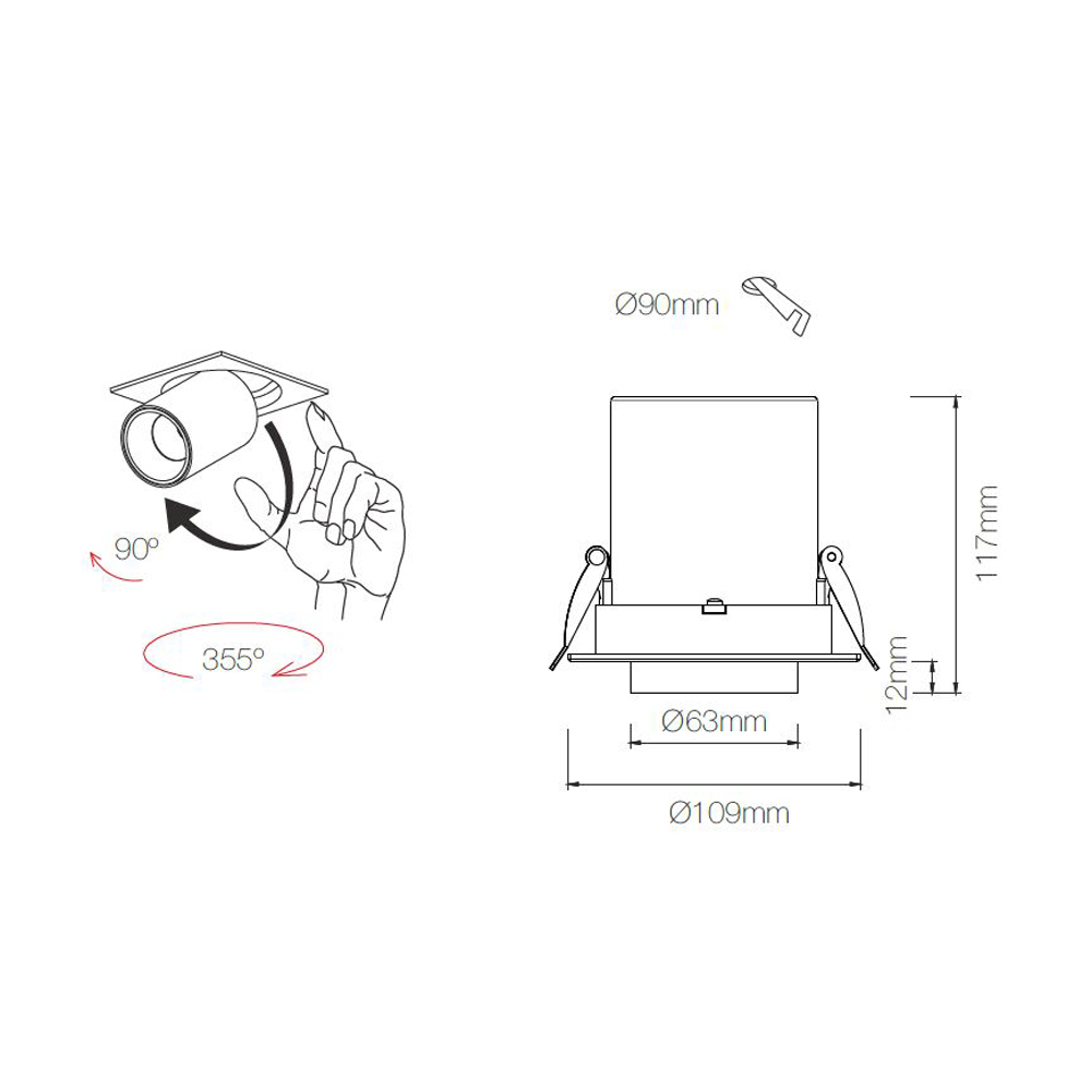 Nastavitelný zapuštěný LED reflektor v bílém nebo černém hliníku.