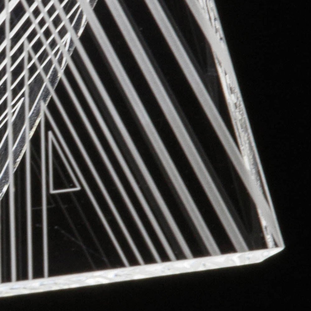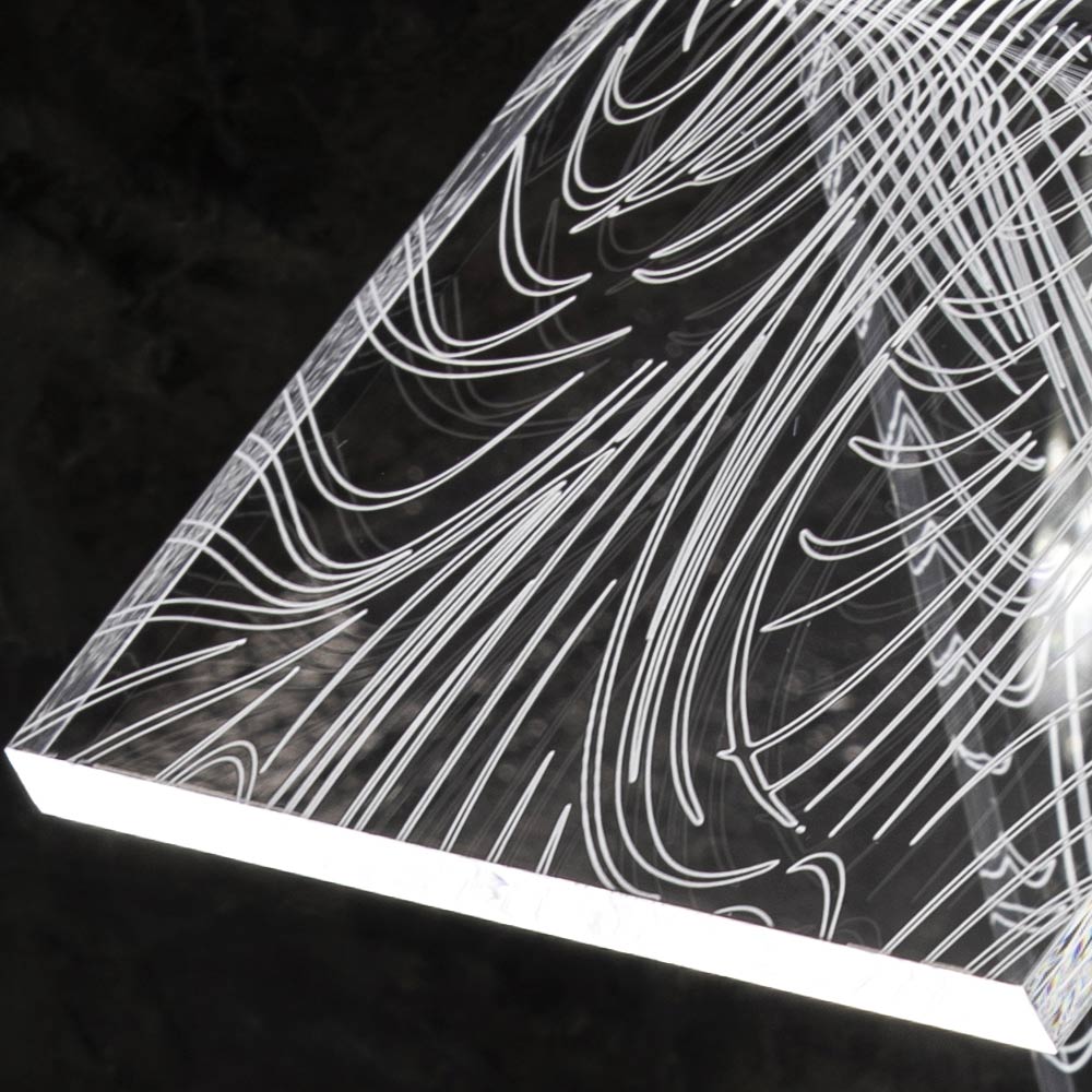 ručně ohýbaného akrylového křišťálu o tloušťce 10 mm a vyznačuje se