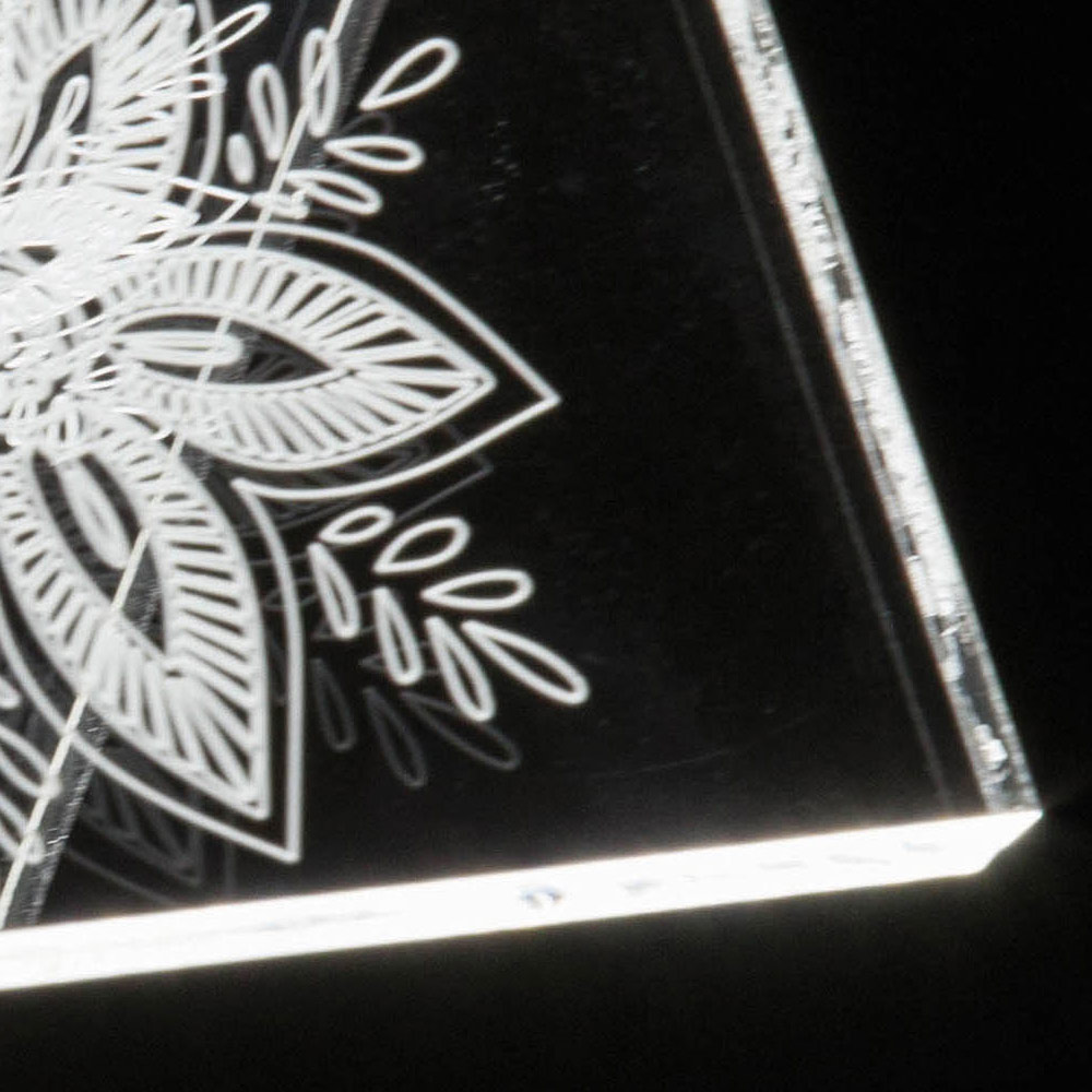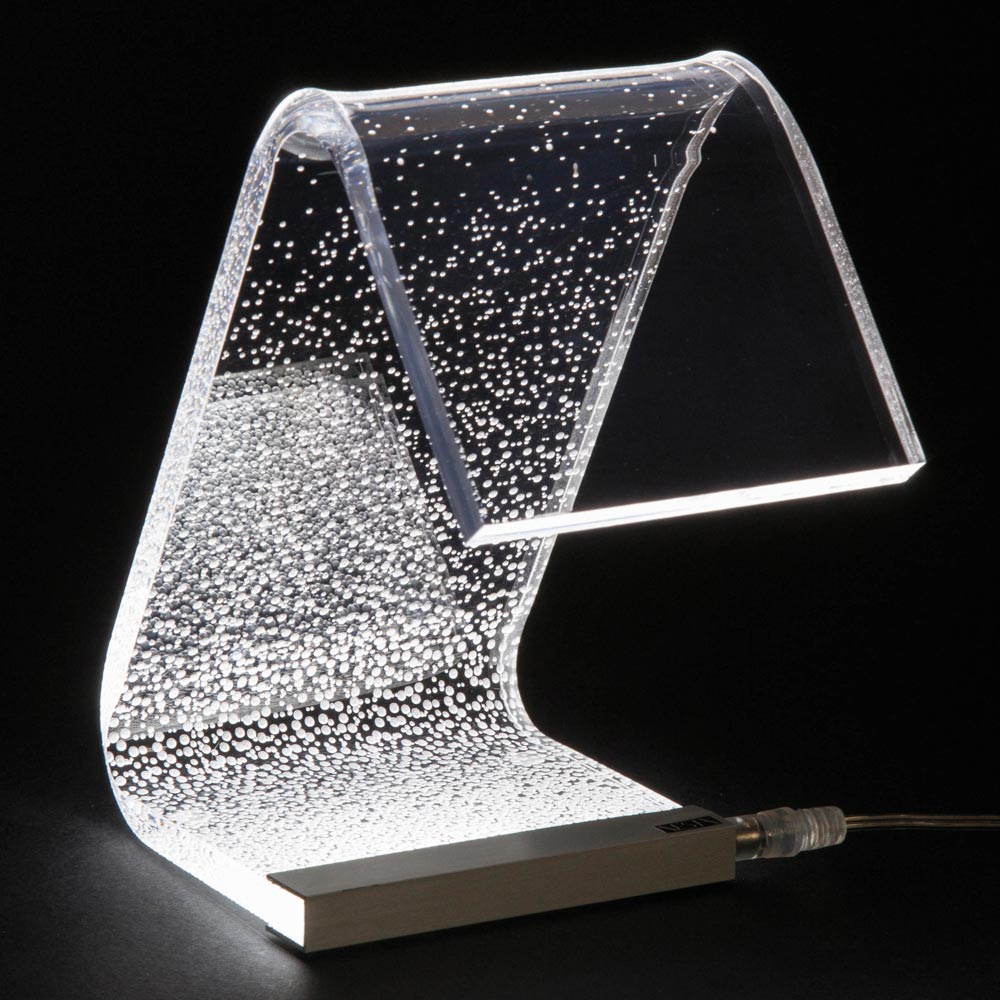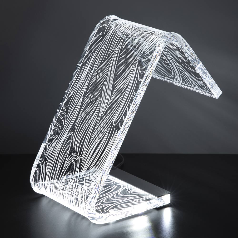 LED pásku umístěného na základně rozsvěcují po celé délce těla světla a vytvářejí díky fyzikálně-technickým vlastnostem akrylového krystalu je umožněna mimořádná