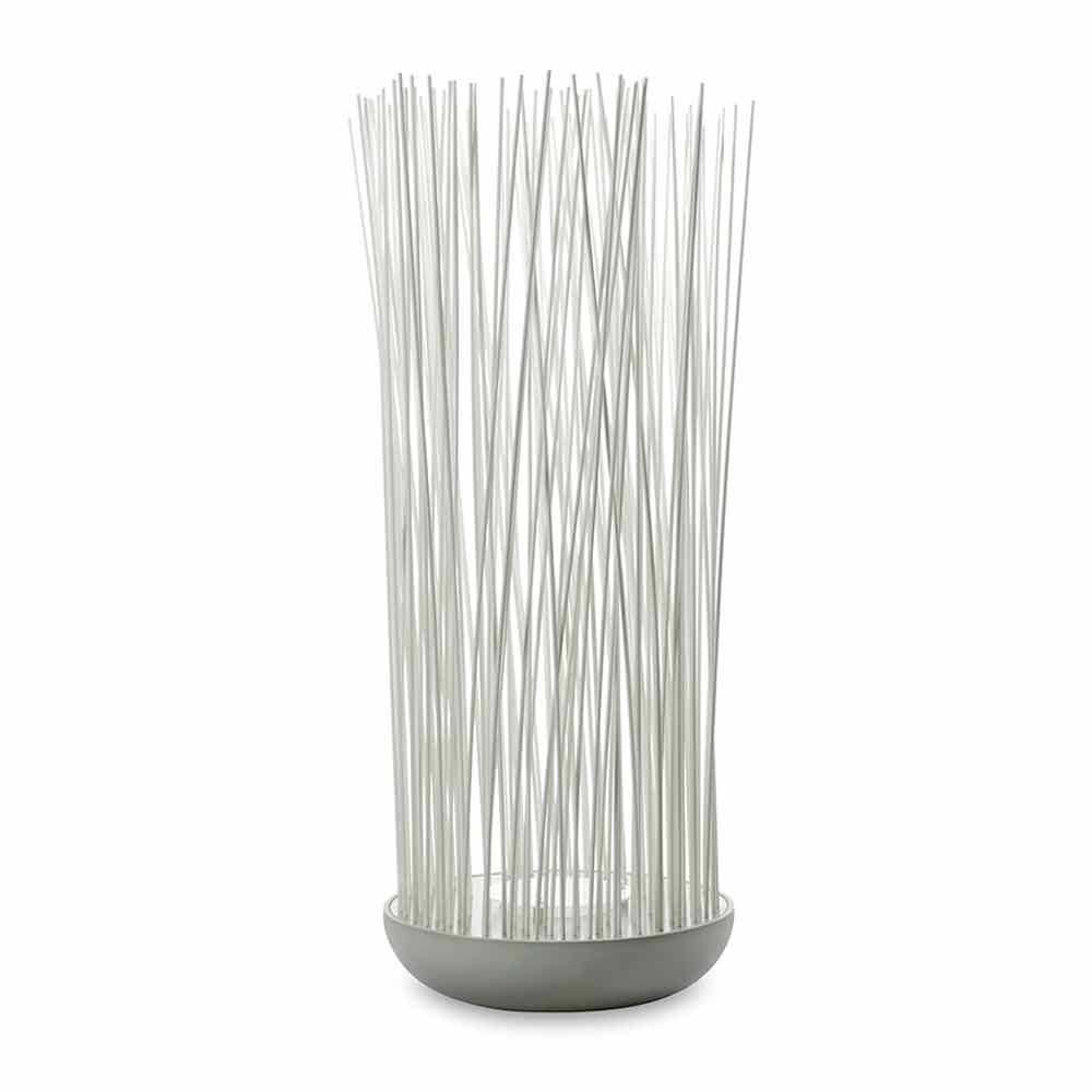 Lampa je vyrobena z matně šedého technopolymeru a matně bílých tyčí z PVC.