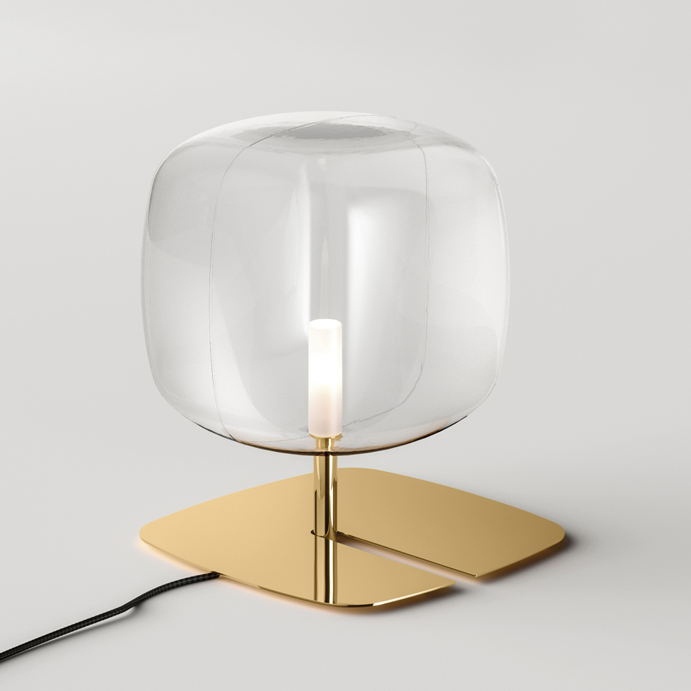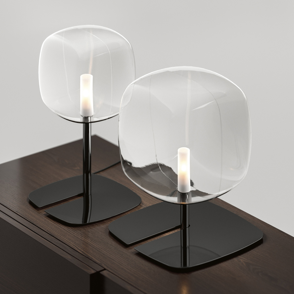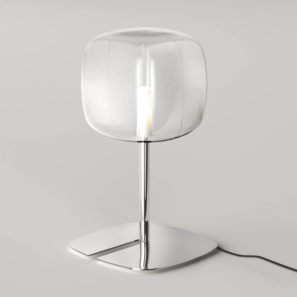 Stolní LED lampa z průhledného skla a kovu Made in Italy.