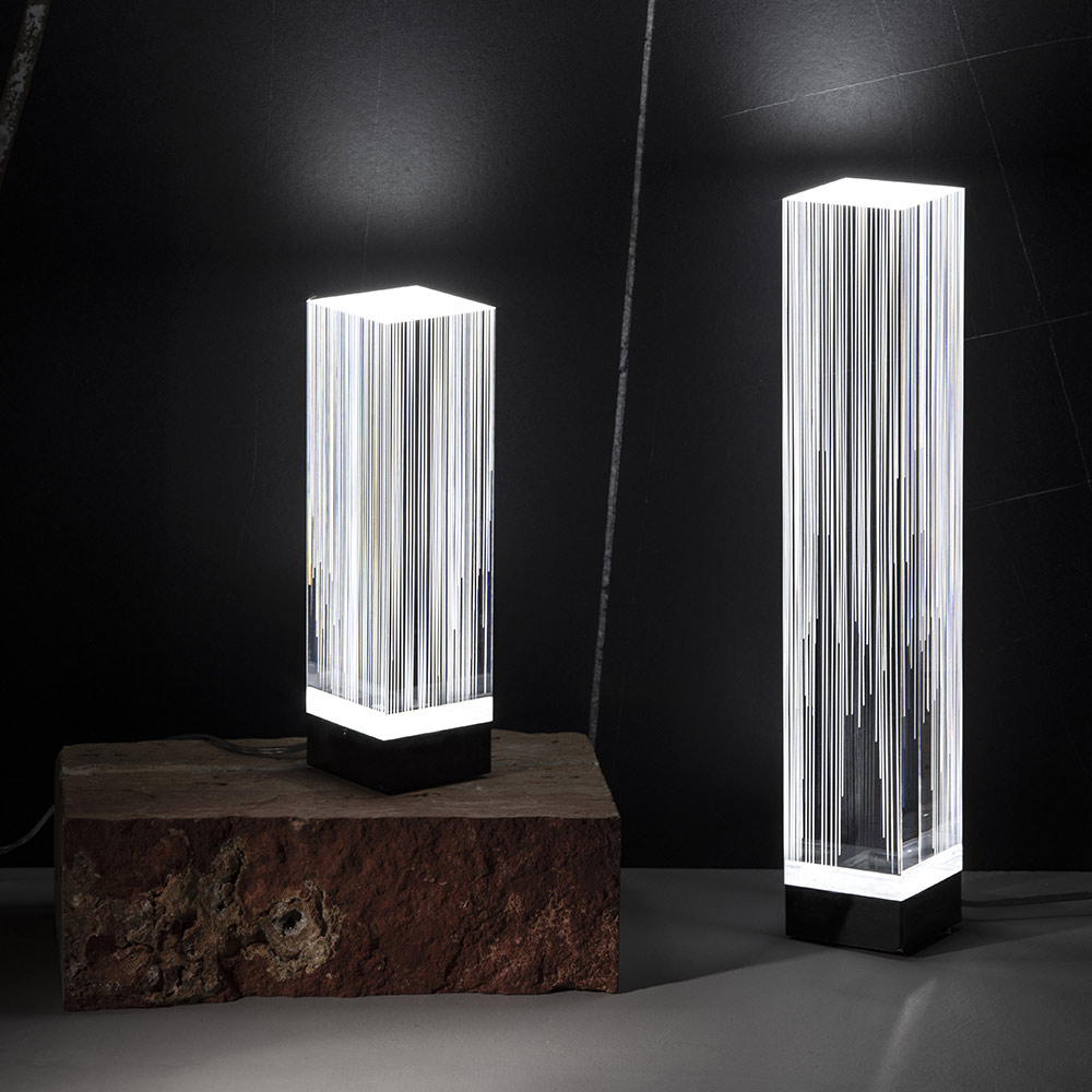 LED stolní lampa z laserem gravírovaného akrylového krystalu, 2 velikosti vyrobené v Itálii.