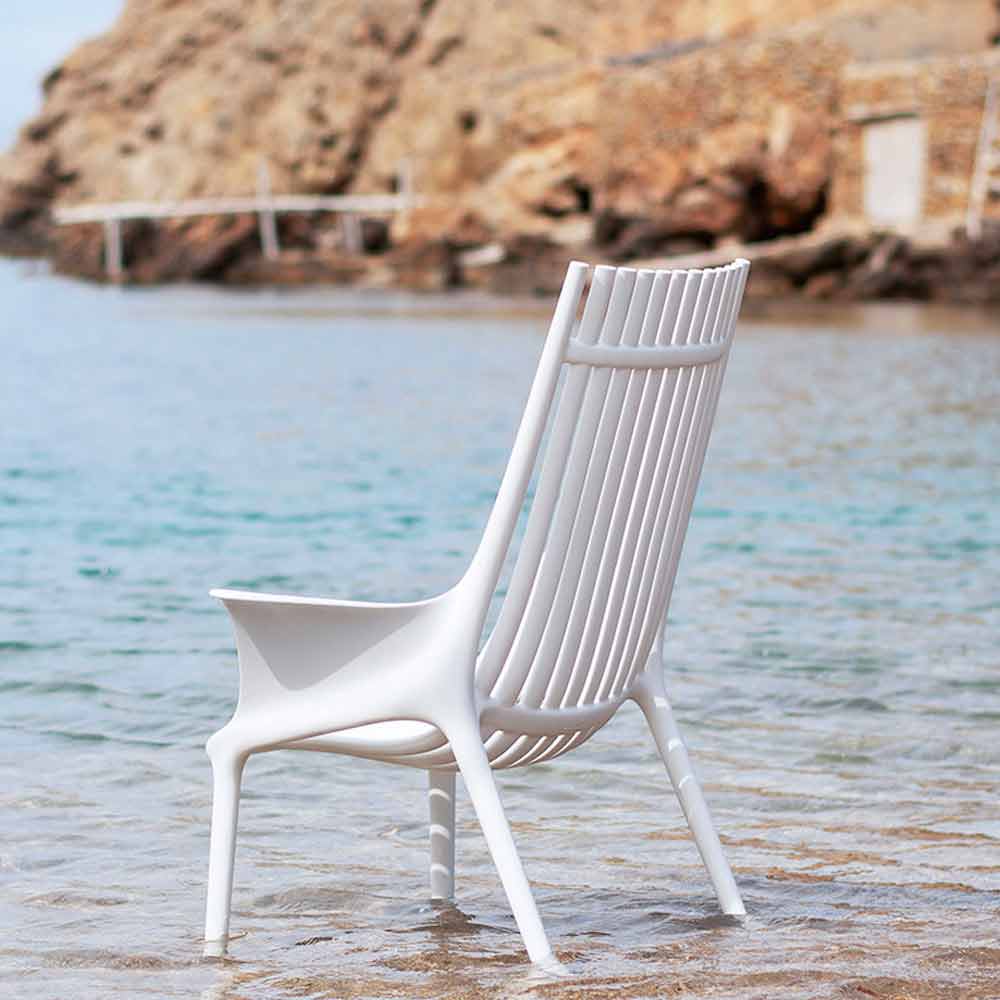 venkovní křeslo s područkami se vyznačuje svými tvary, které připomínají moře a nabízejí