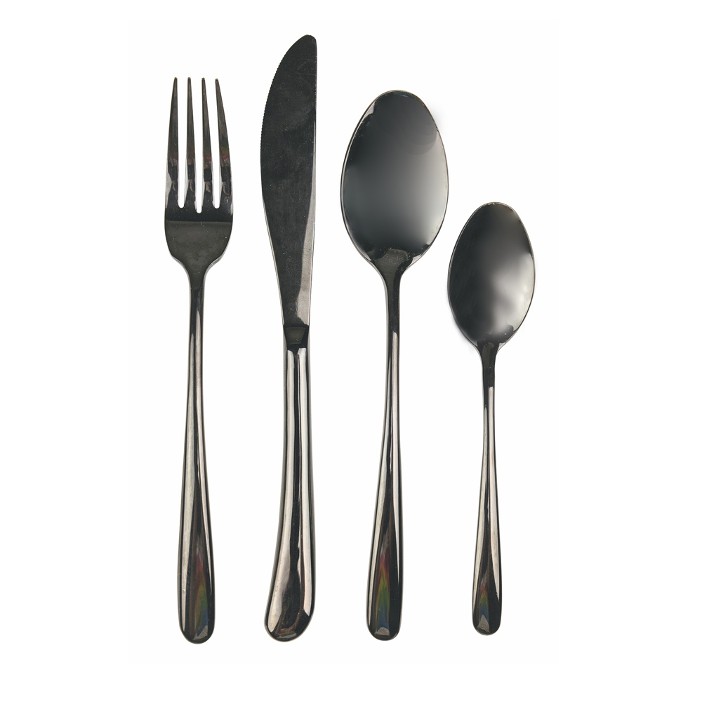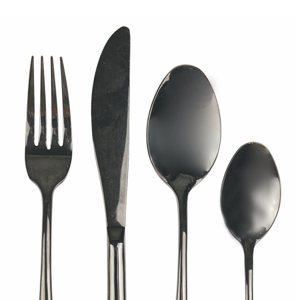 Lesklá černá ocelová sada příborů se zaobleným designem 24 kusů - kapka
