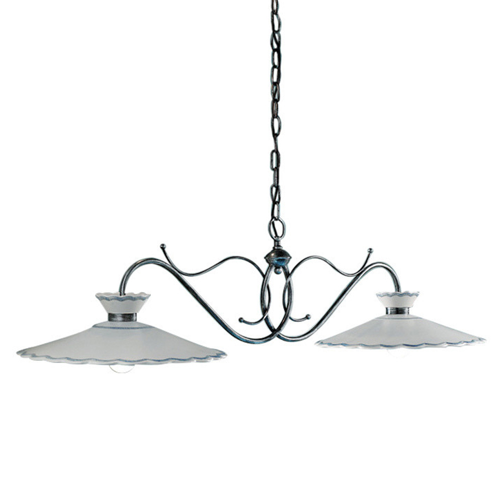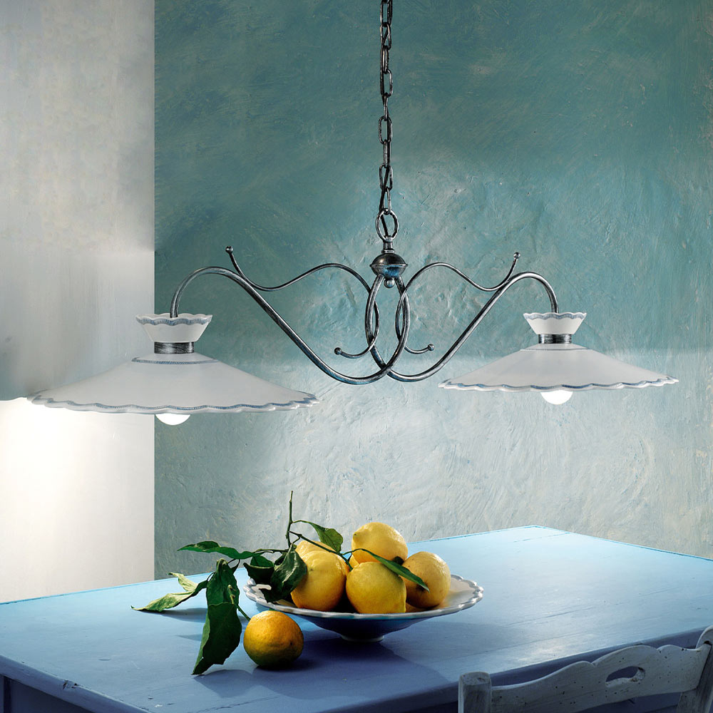Ručně vyráběná 2-světelná závěsná lampa z kovu a keramiky s efektem výšivky, 2 velikosti vyrobené v Itálii společností Ferroluce.