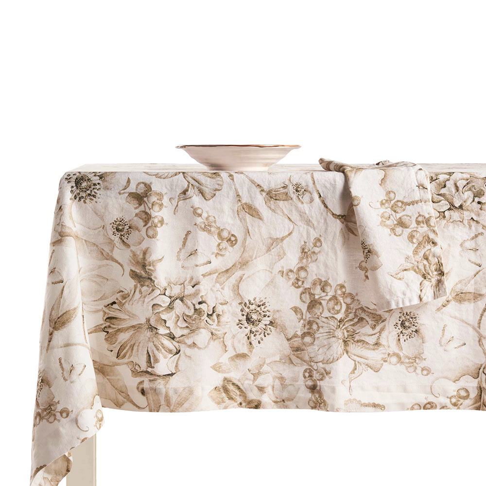 Tento potištěný a v oděvu vypraný ubrus z čistého lnu je skutečným mistrovským dílem elegance a stylu. Jeho svěží květinový design přináší dotek přírody a svěžesti na každý stůl, takže je ideální pro každou příležitost, od formálních večeří až po uvolněné rodinné obědy. Kvalita čistého lnu, známá svou trvanlivostí a odolností , zajišťuje, že tento ubrus zůstane ústředním prvkem vašeho stolu po mnoho let.