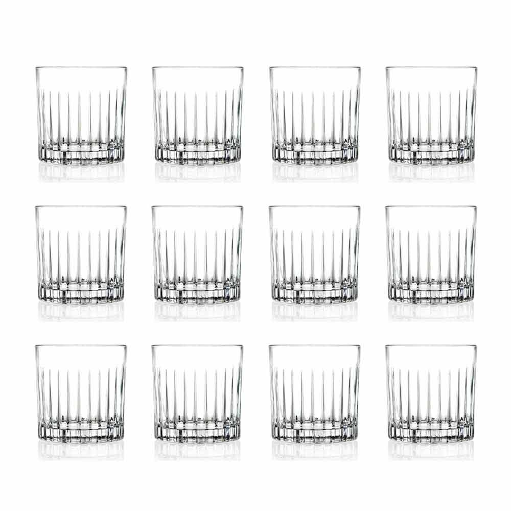 12 luxusních staromódních brýlí s univerzálním designem v dekorovaném ekologickém křišťálu 100% vyrobeno v Itálii.