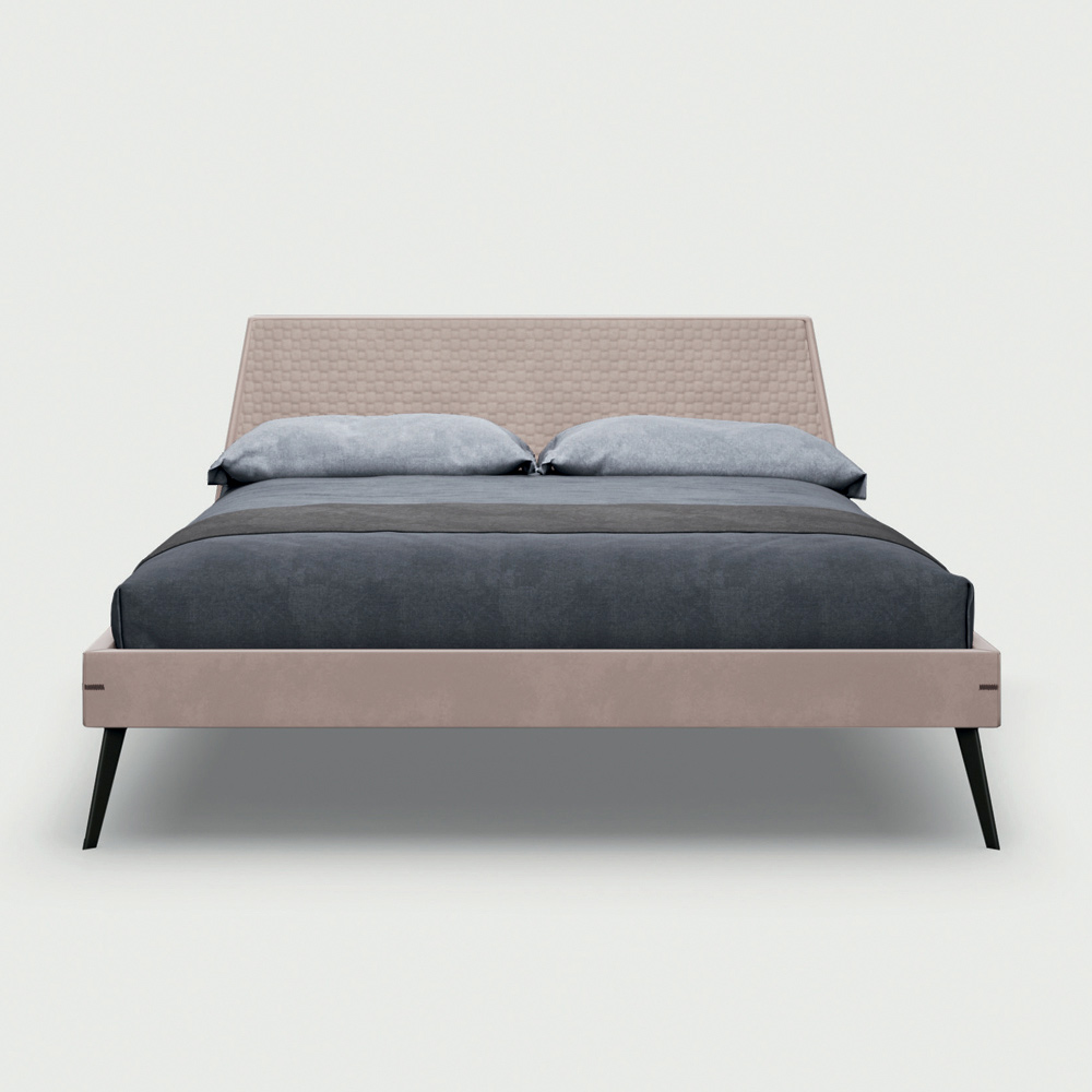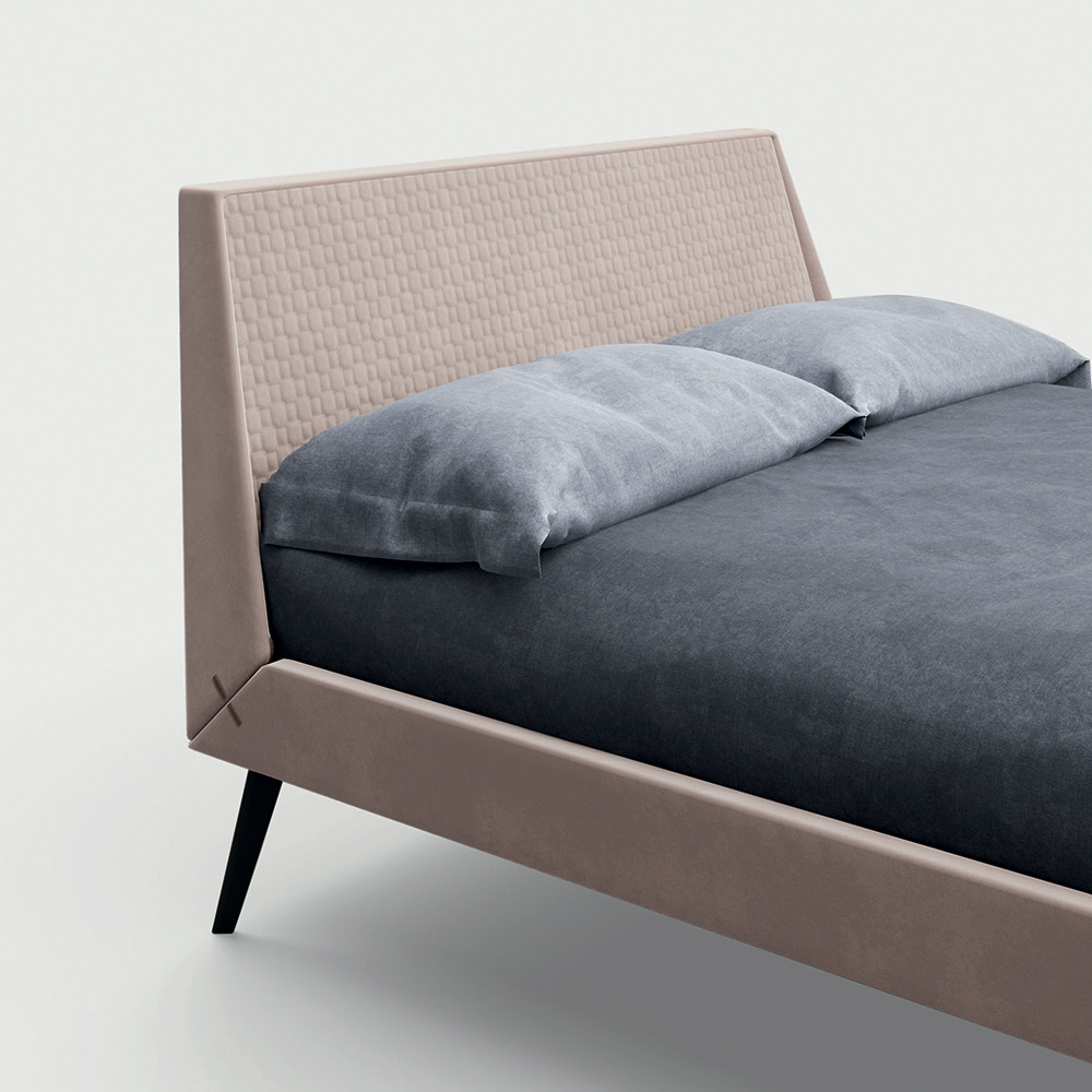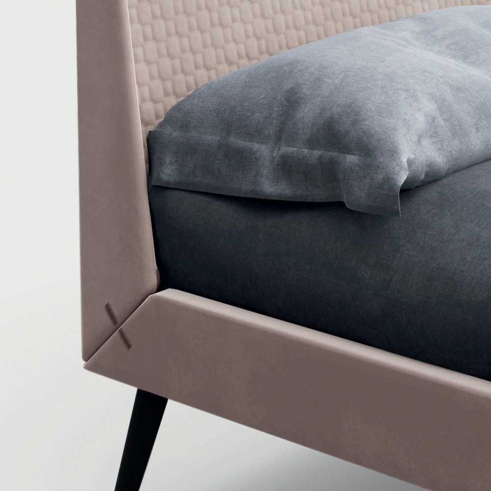 přirozený komfort formy a funkce . Postel je podtržena dvěma různými úrovněmi polstrování, které se spojují s čelem postele a které je zase spojeno se základnou zdobenou nádhernými prošitými vložkami, které zdobí její tvary. Prvky, které dotvářejí kompozici, obohacují estetiku ložnice s
