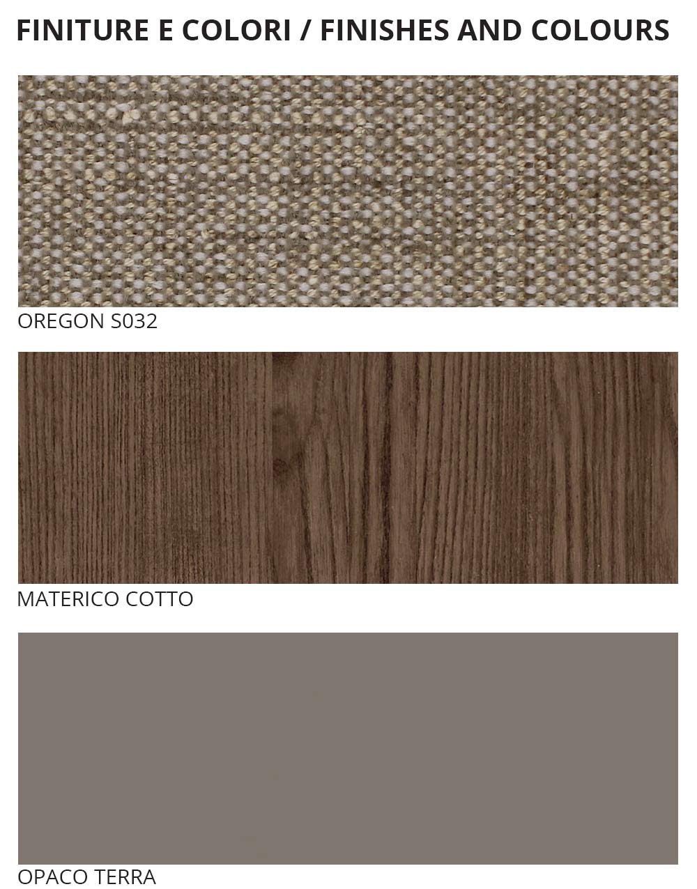 terakotového a matného lakovaného dřeva s otevíráním praktickou drážkou na přední straně zásuvky. Zvláštnost představuje neobvyklý tvar čela, který se zavírá dovnitř a navozuje pocit uklidňujícího útočiště, a je také ozdoben rafinovaným designem vytvořeným prostřednictvím švů nahoře. Spolu s nočními stolky a komodou má vytvořená atmosféra